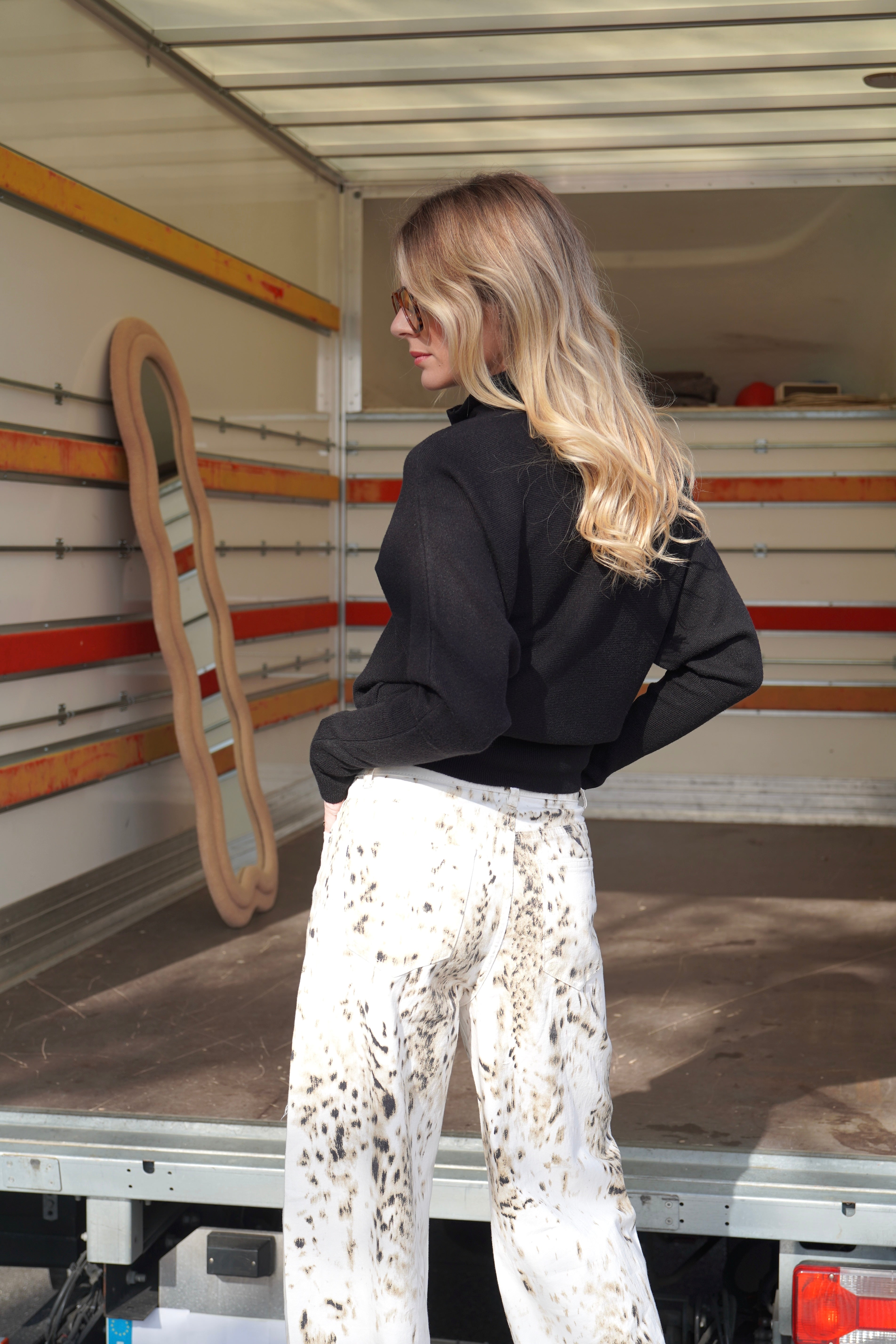 Jean wide leg imprimé léopard beige et noir