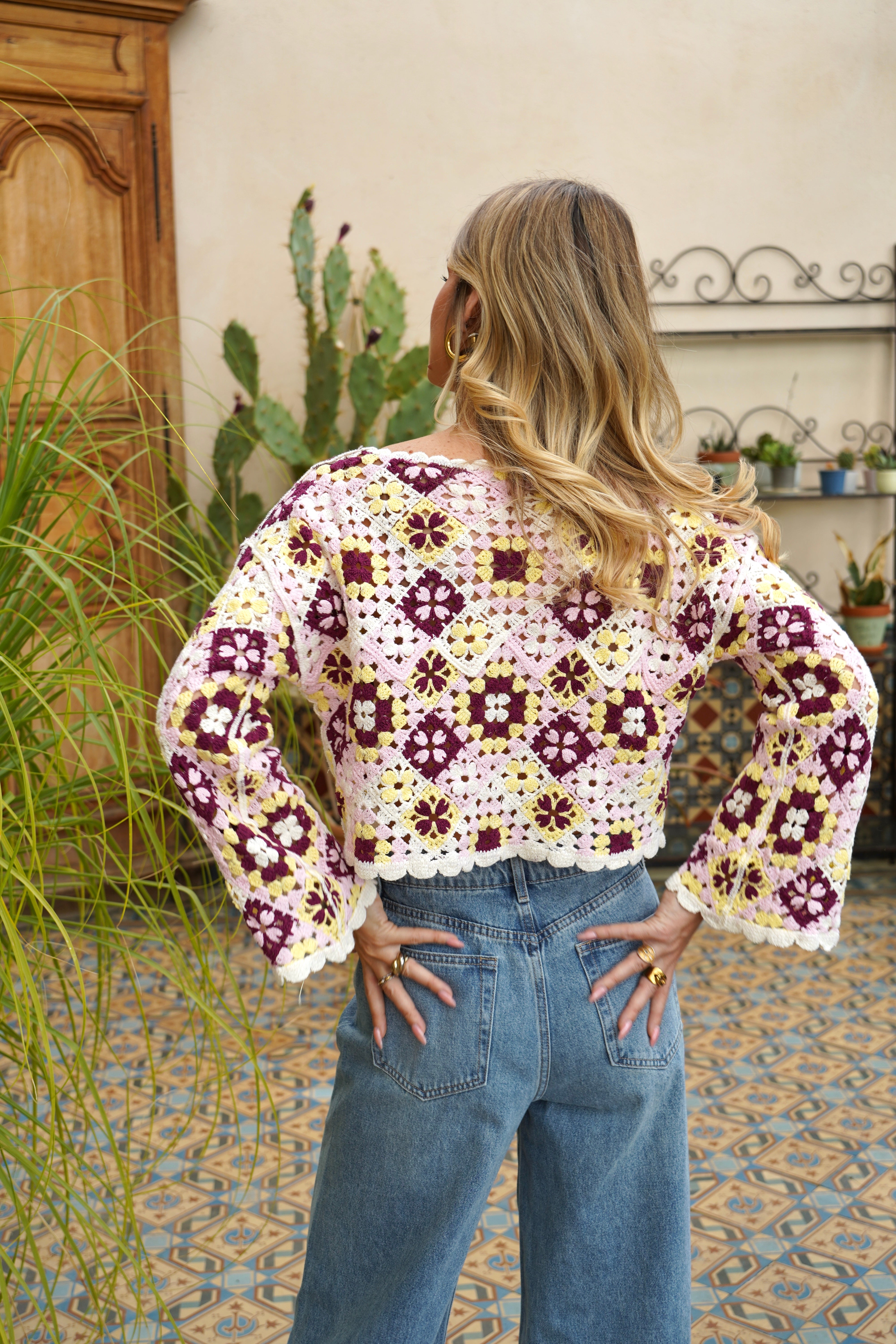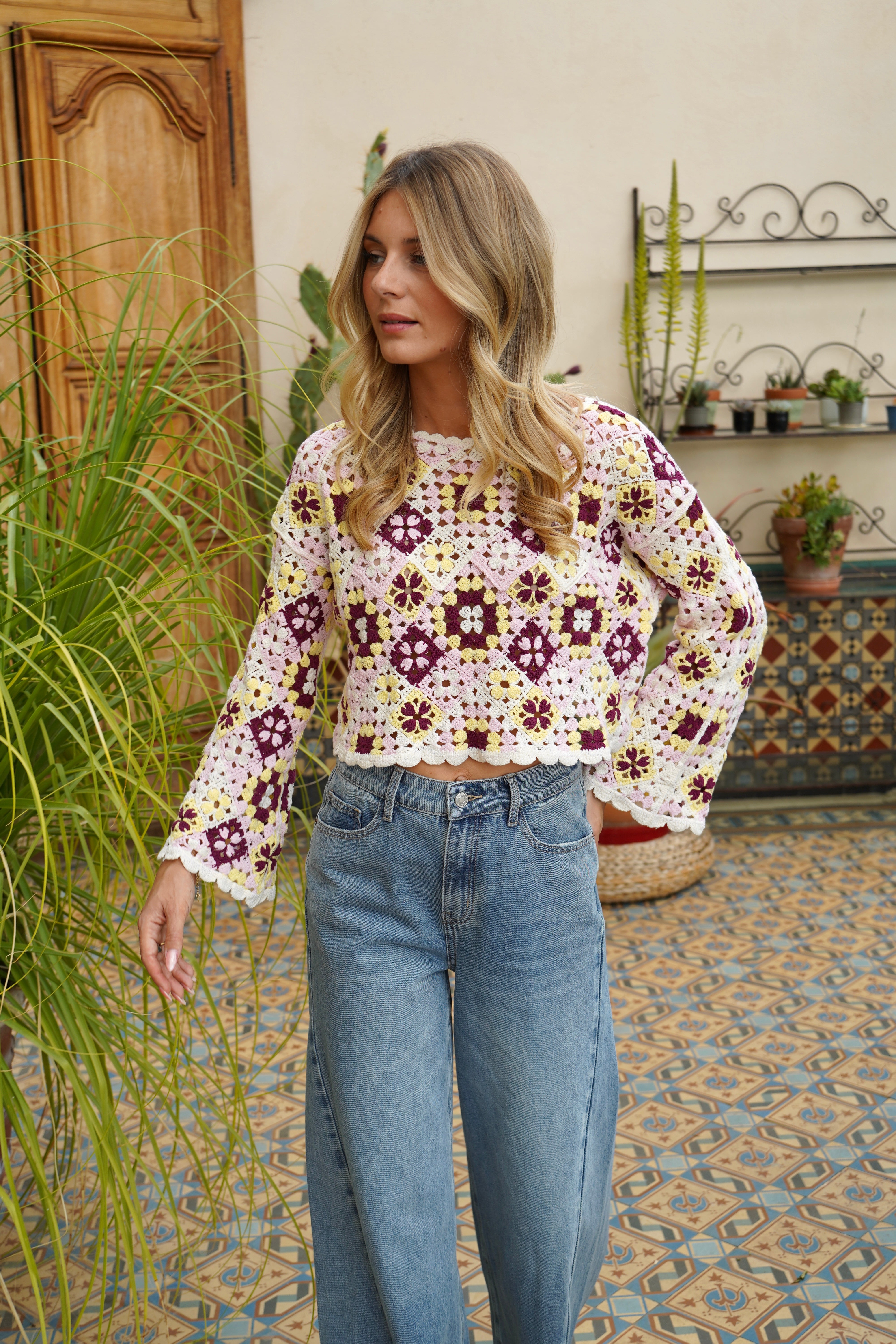 Top en crochet à motifs fleuris