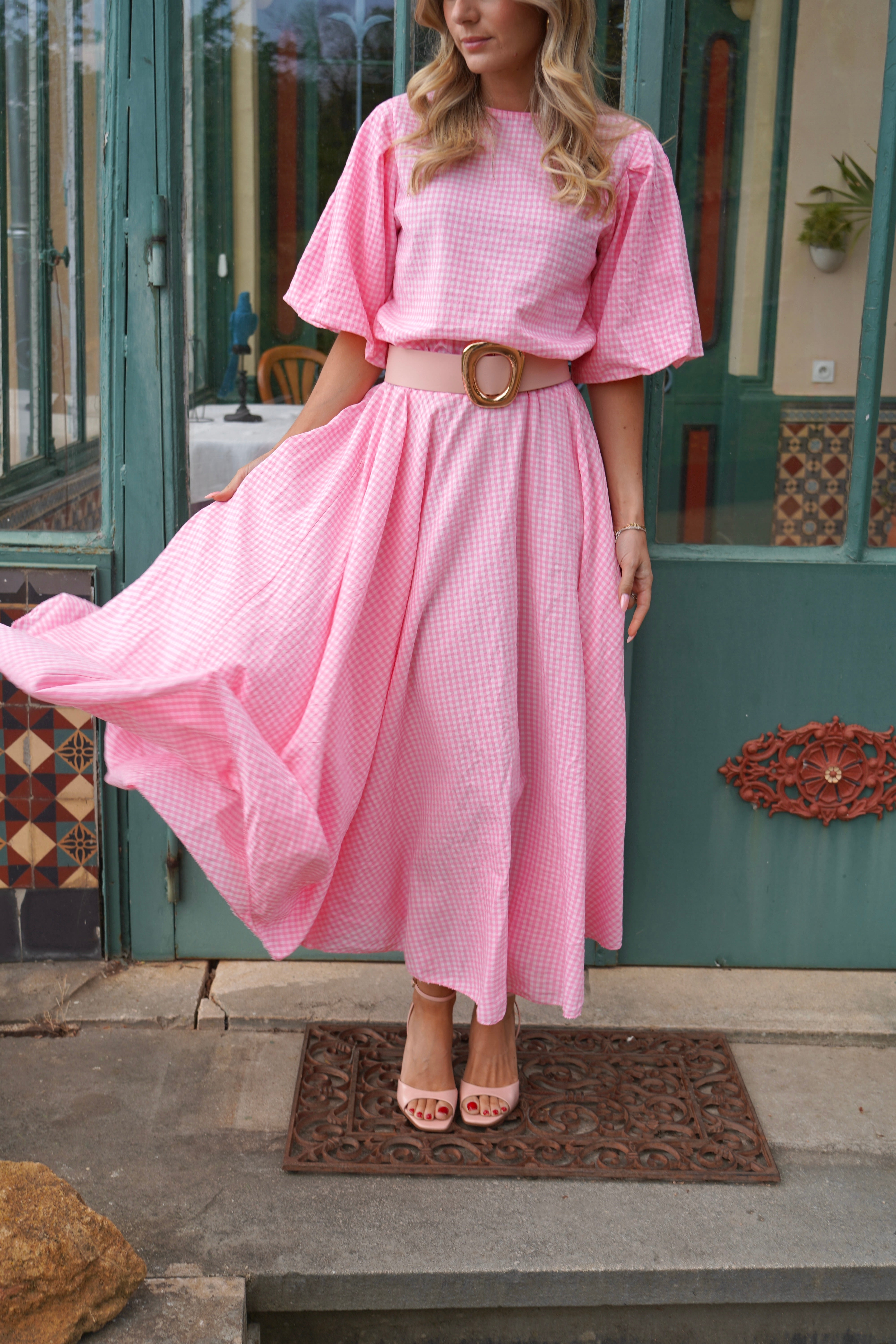 Blouse à carreaux vichy rose