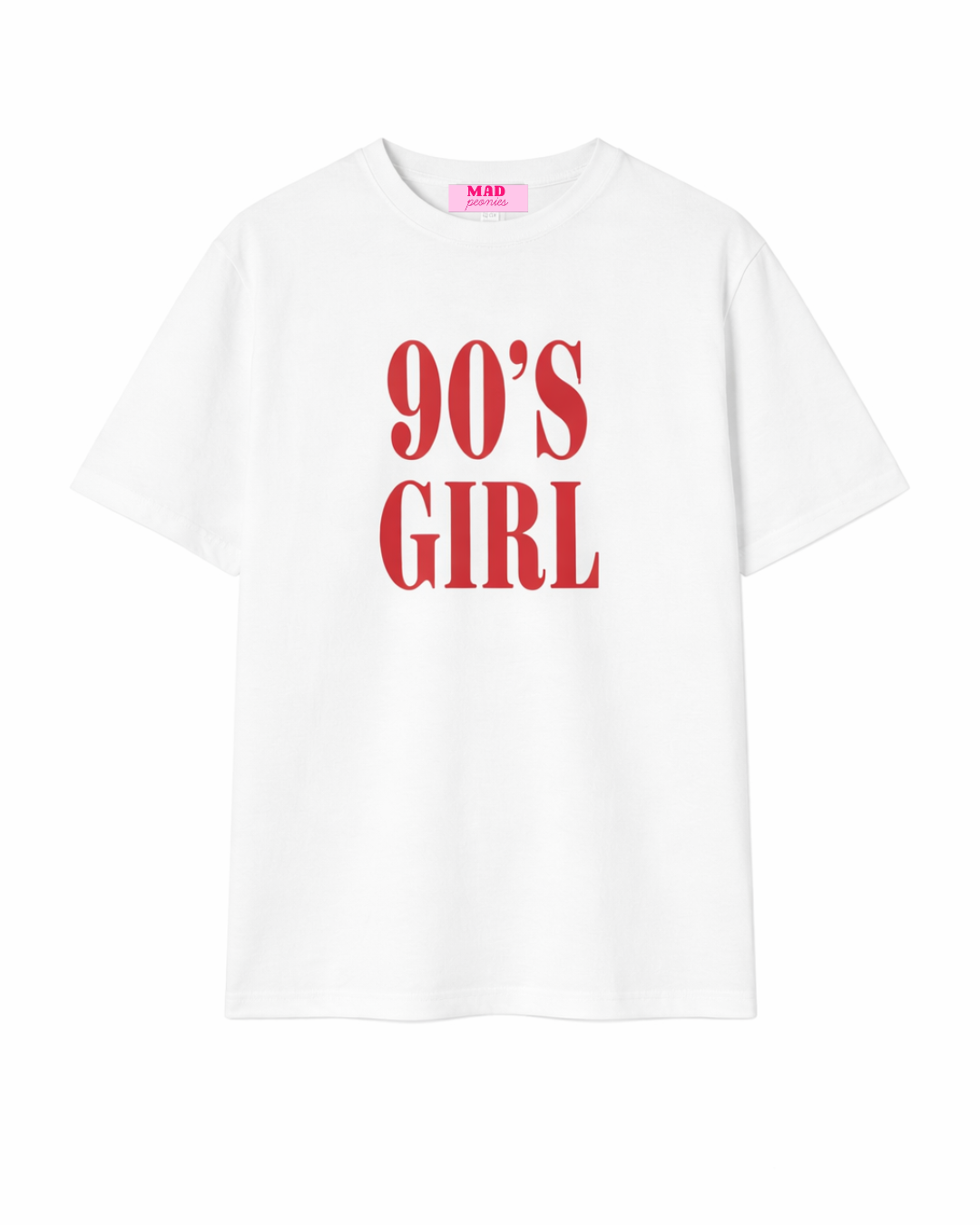 T-shirt blanc inscription rouge “90’s girl” sur le devant