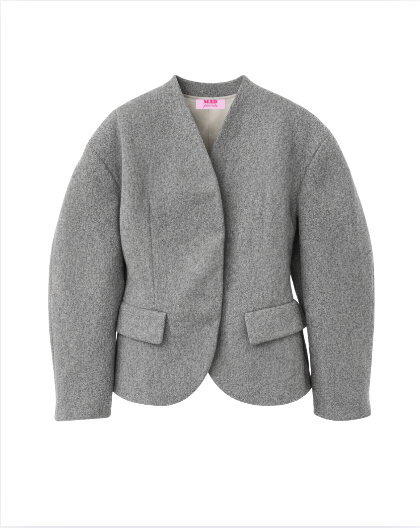 Grey jacket in a wool blend.
