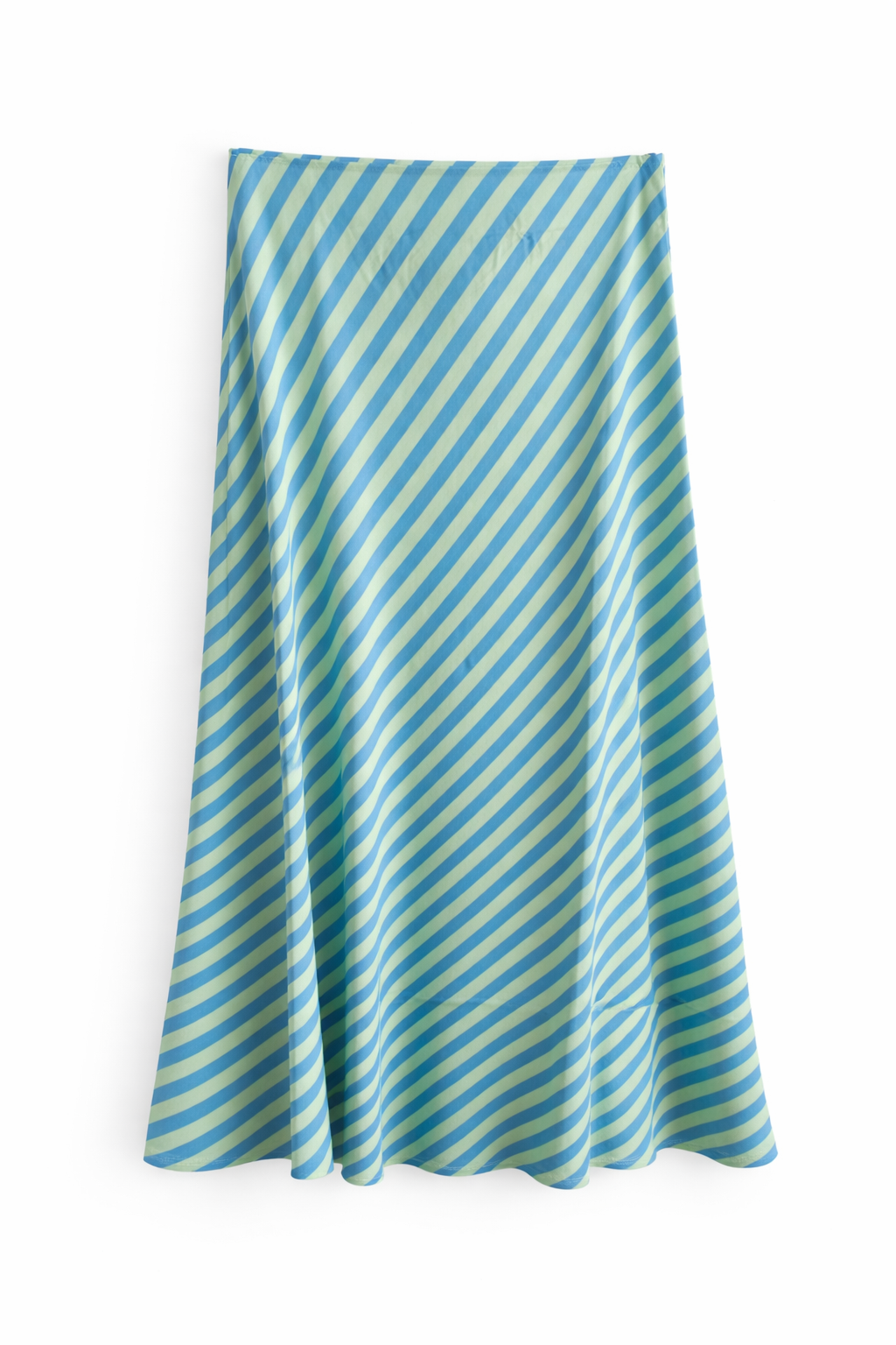 Satin midi skirt with blue and green diagonal stripes