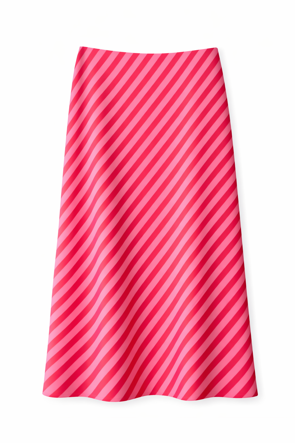 Fluid satin fabric, diagonal stripes in fuchsia and light pink for a luminous effect