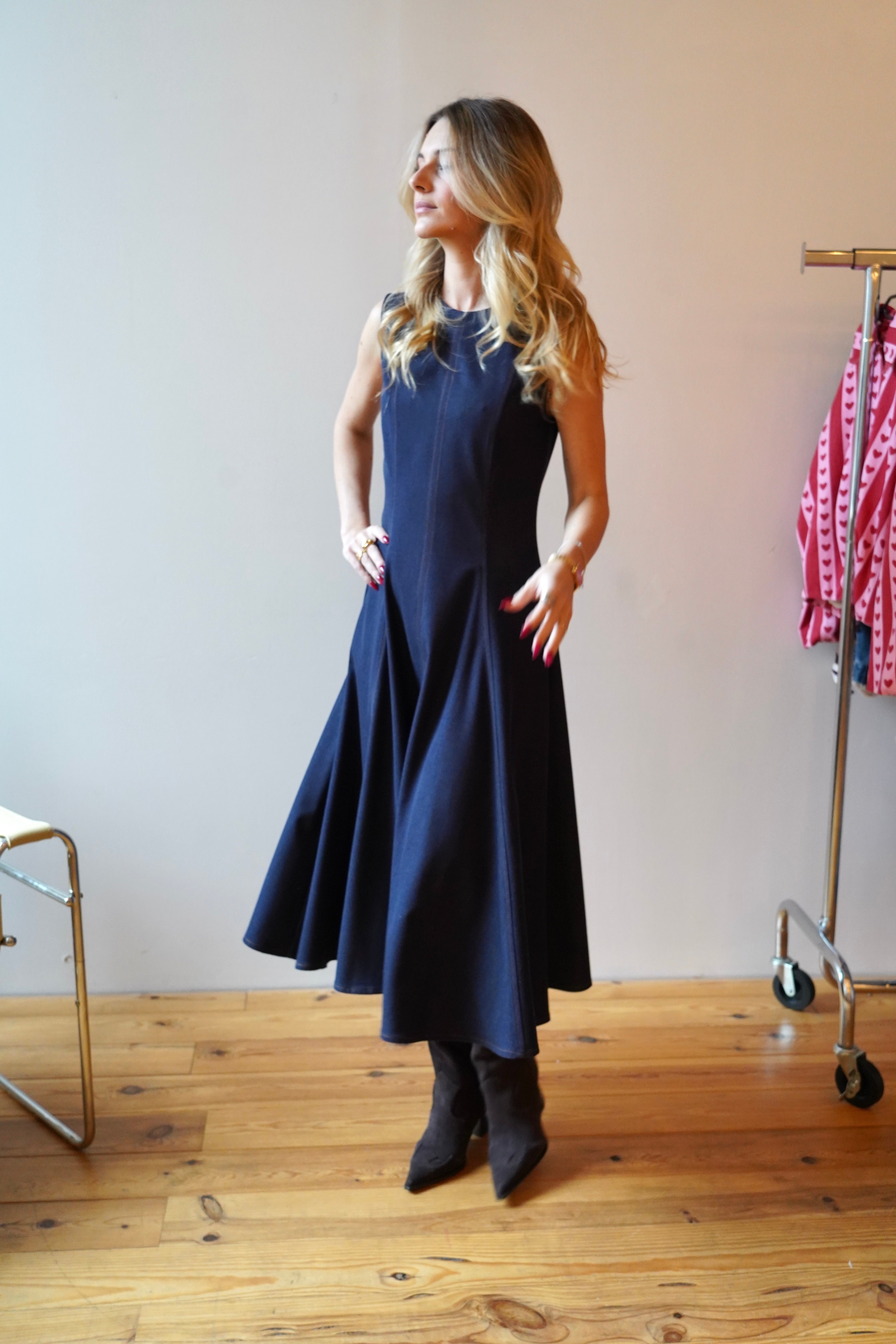 Sleeveless denim maxi dress