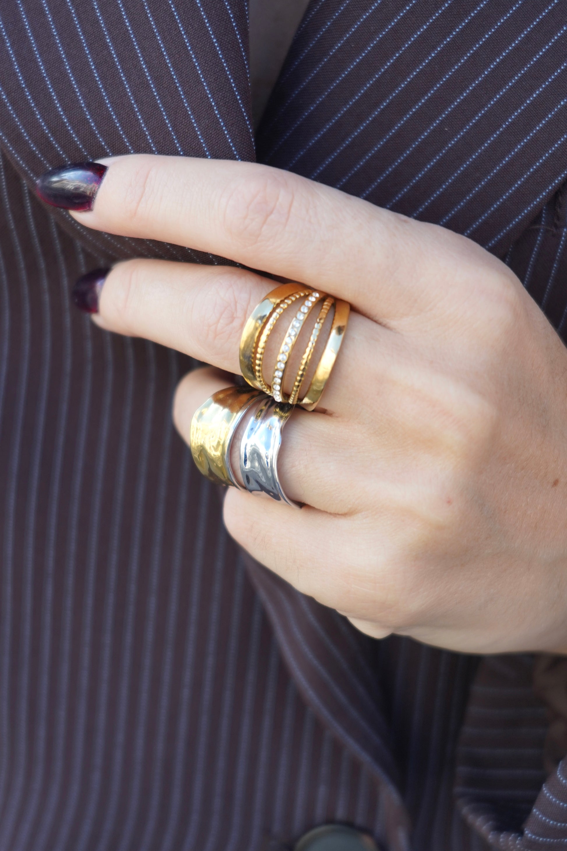 • Two thin gold chains are integrated on either side of the rhinestone band.