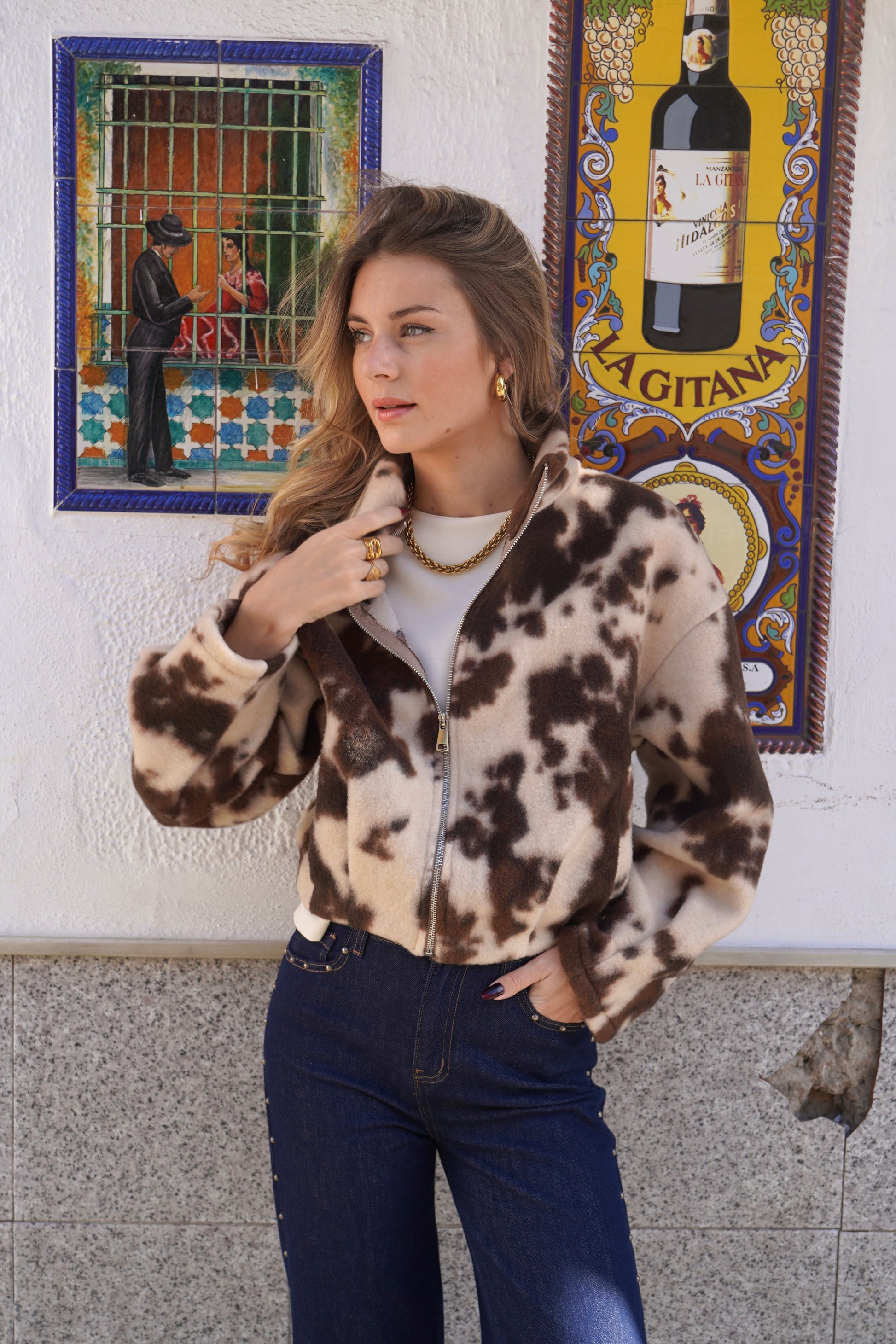• Cow print fleece jacket