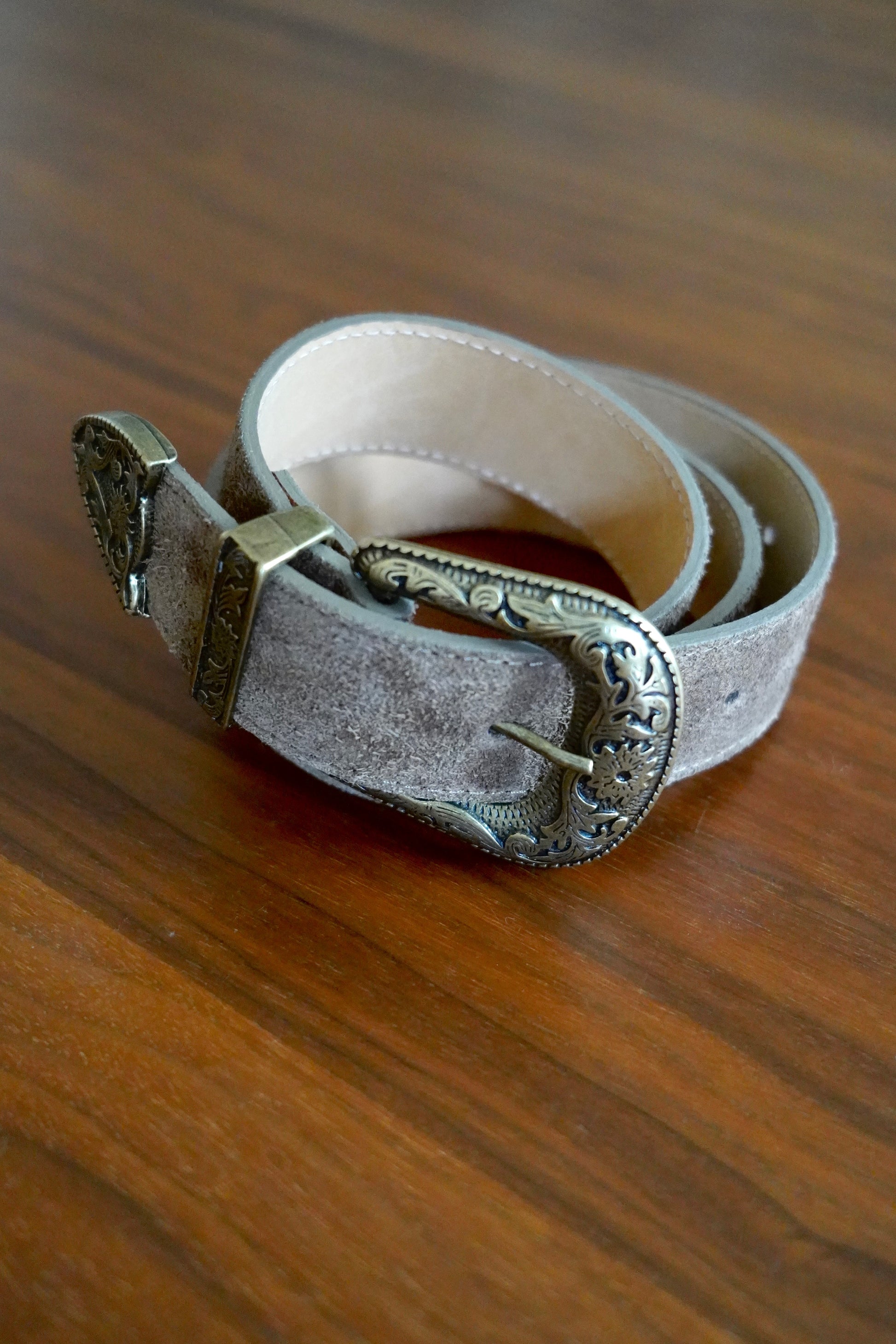 • Ceinture en cuir beige avec boucle effet vieilli doré