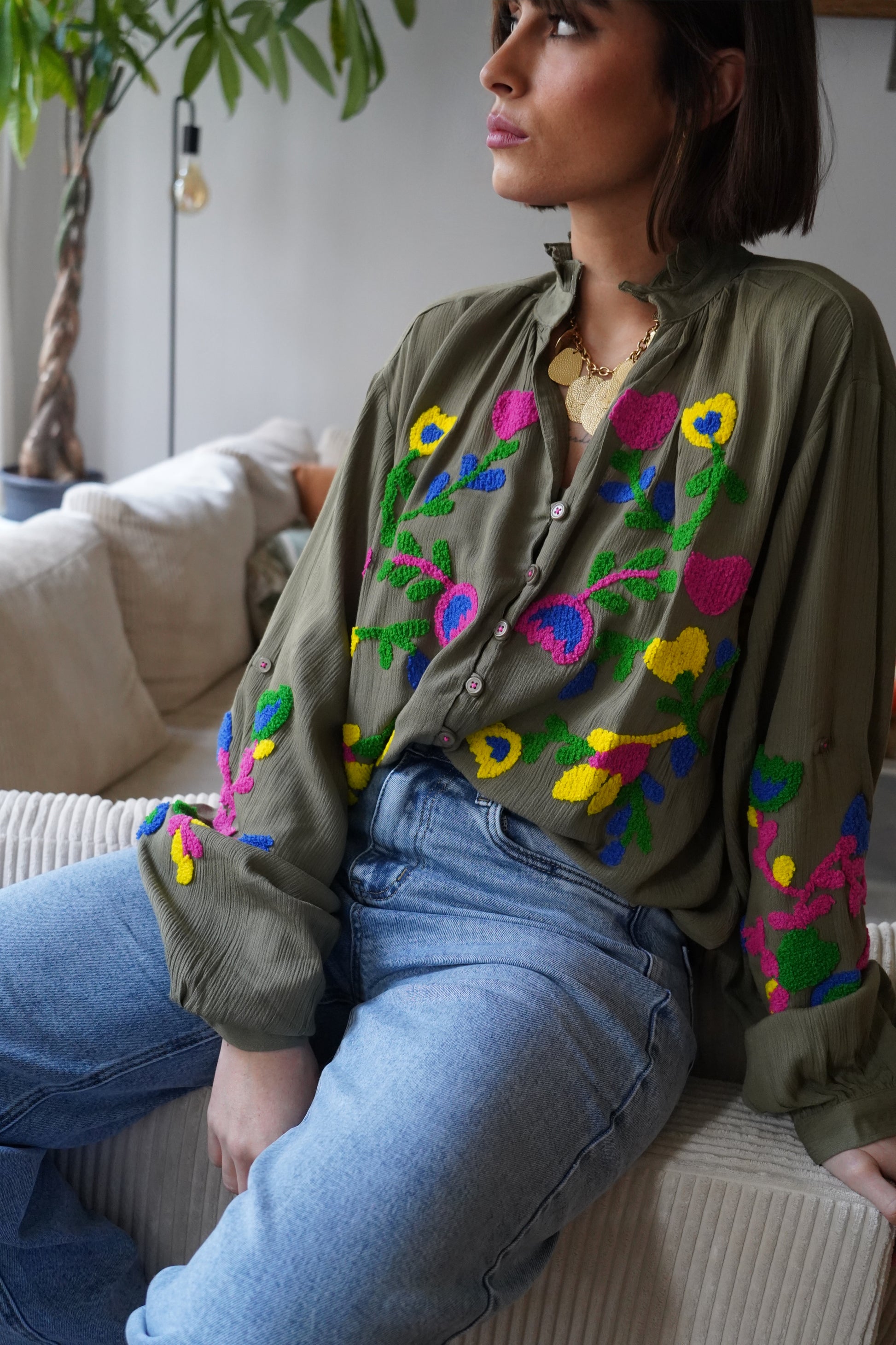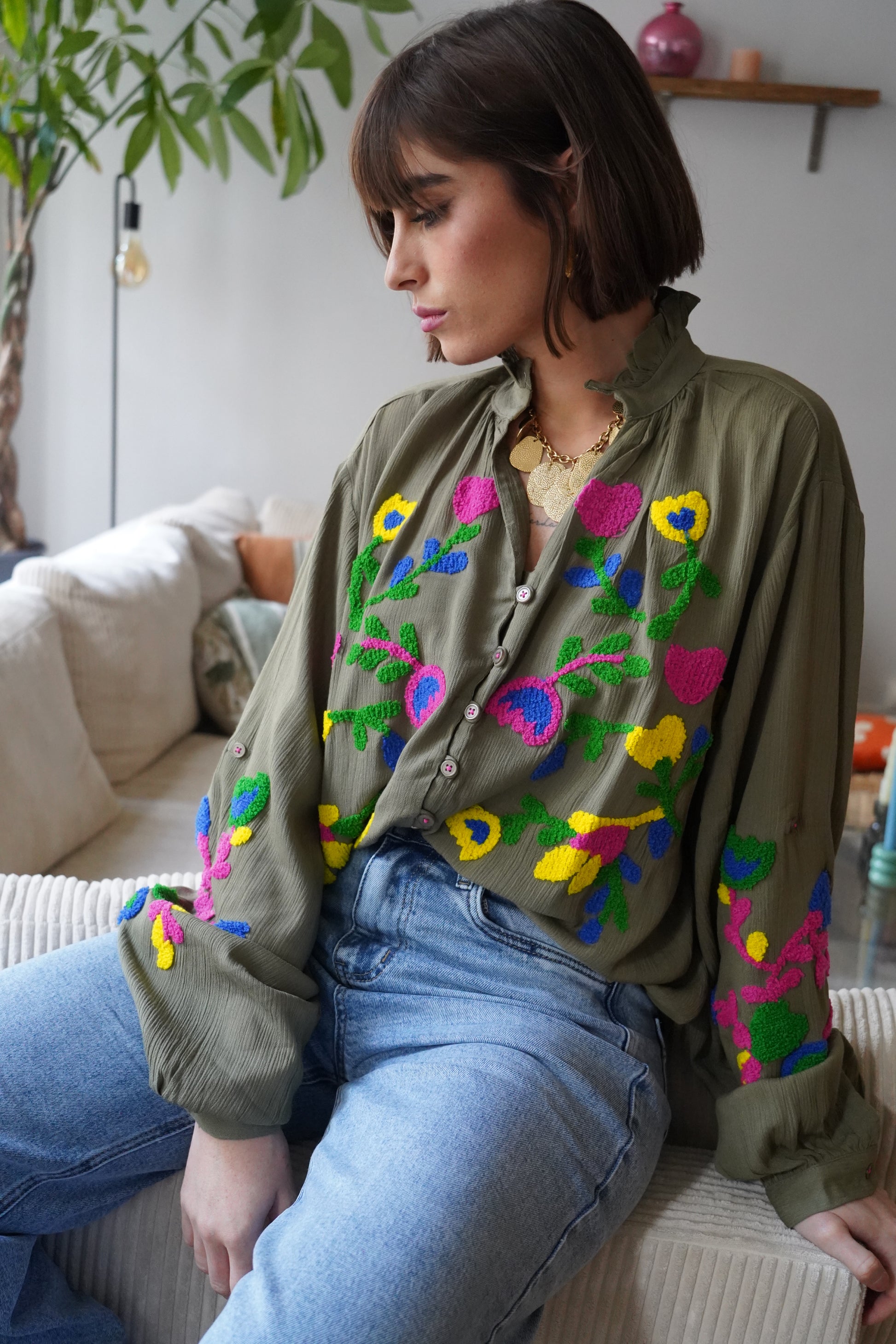 • Manches longues bouffantes resserrées aux poignets avec des boutons
