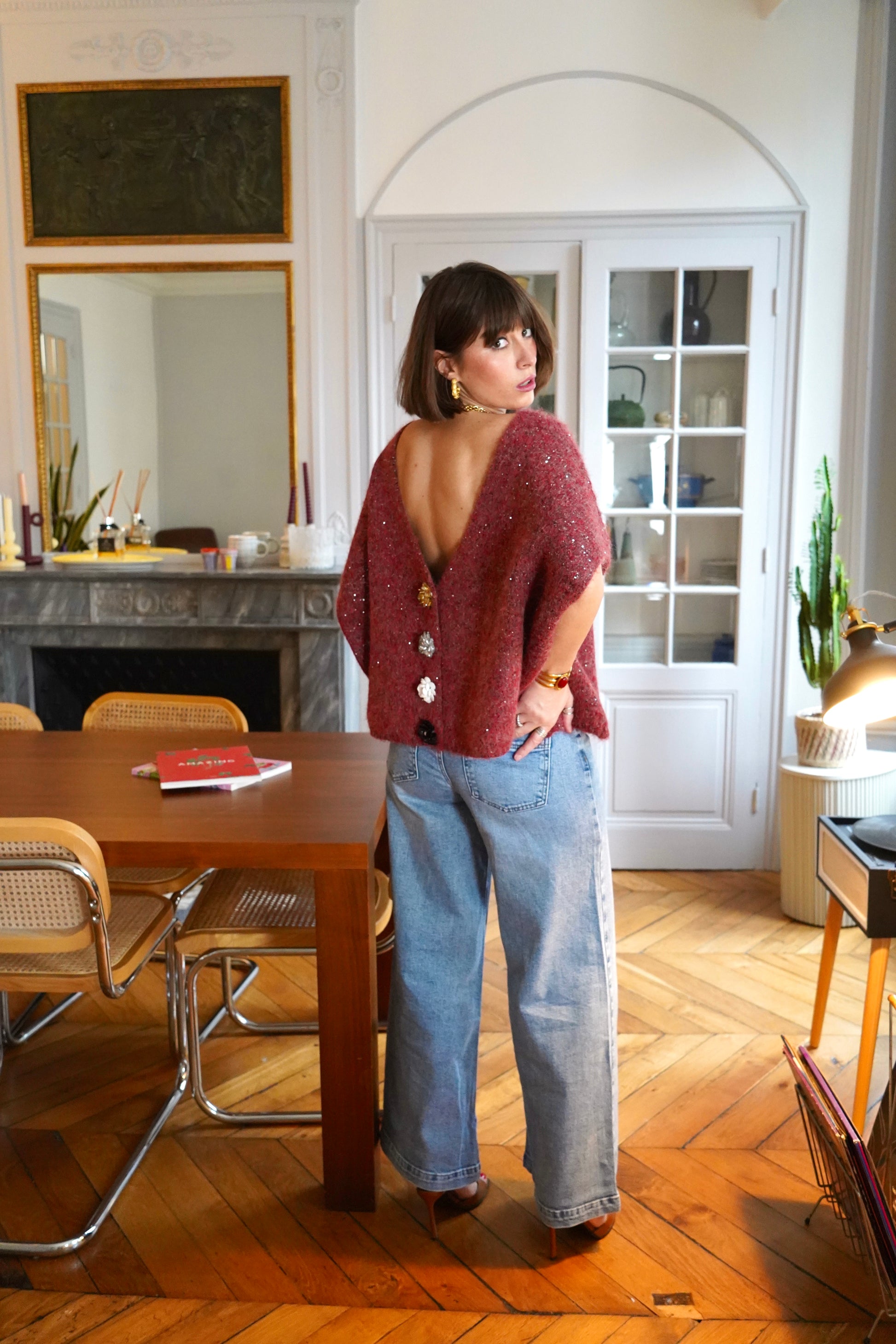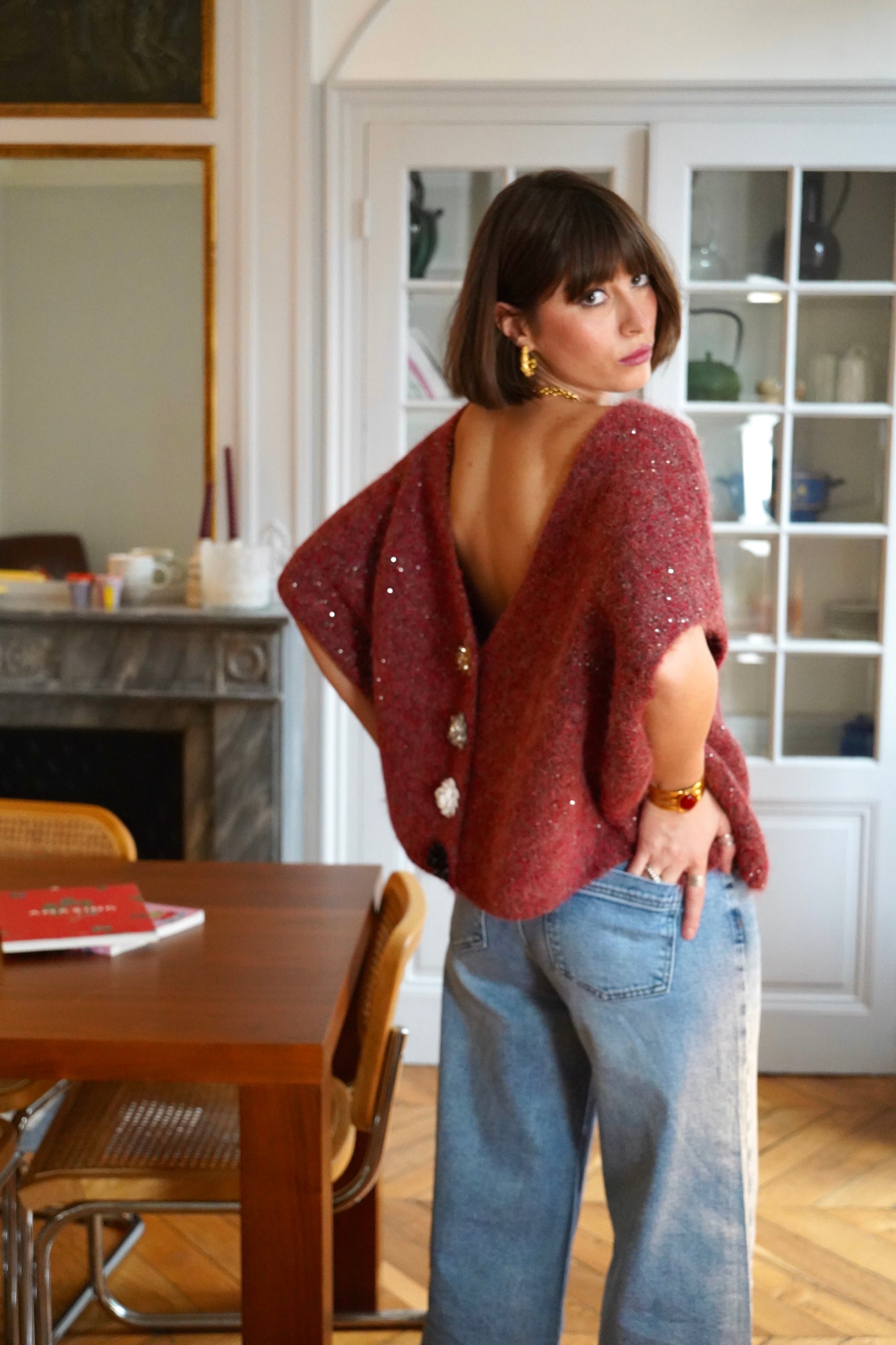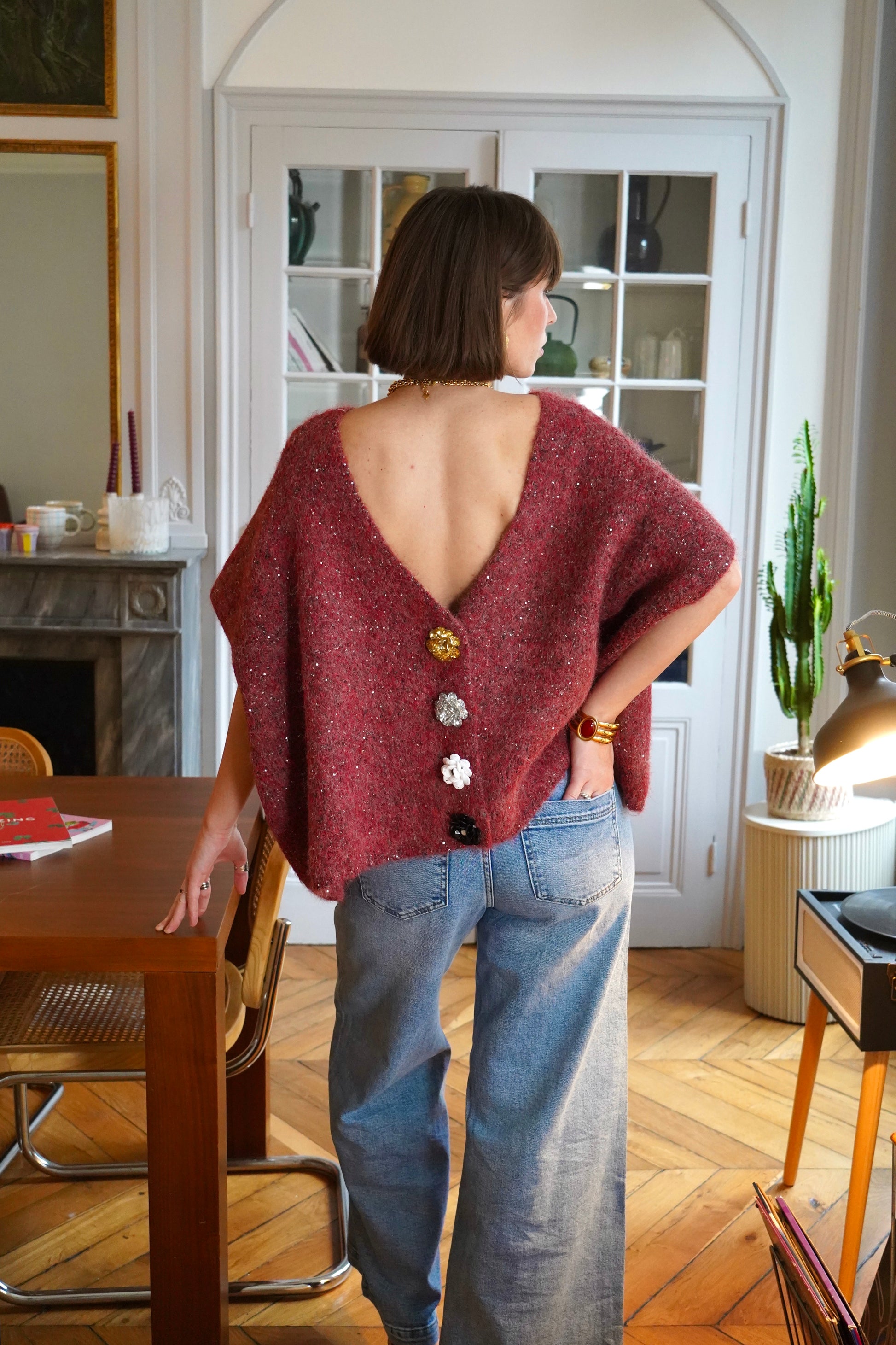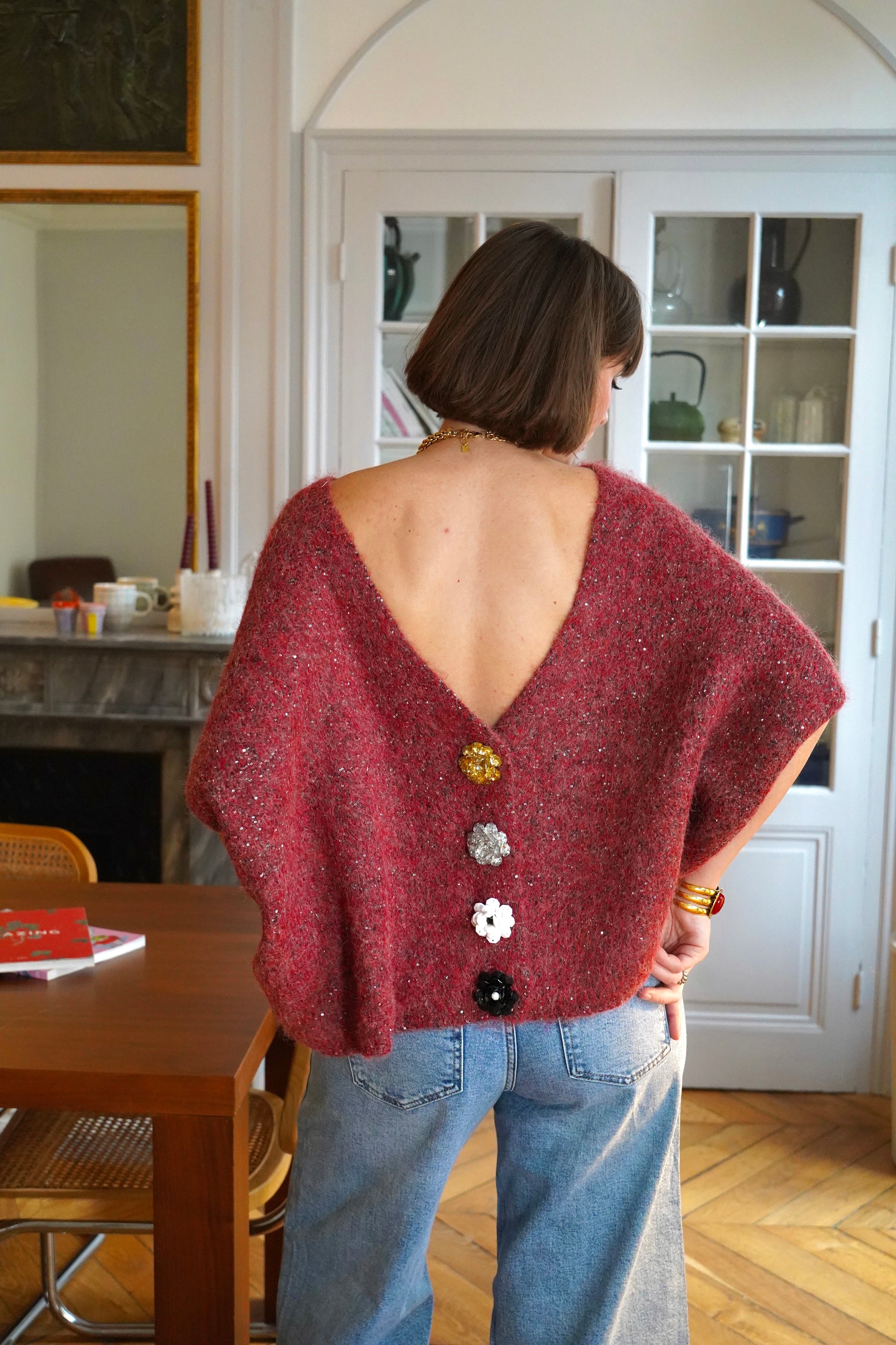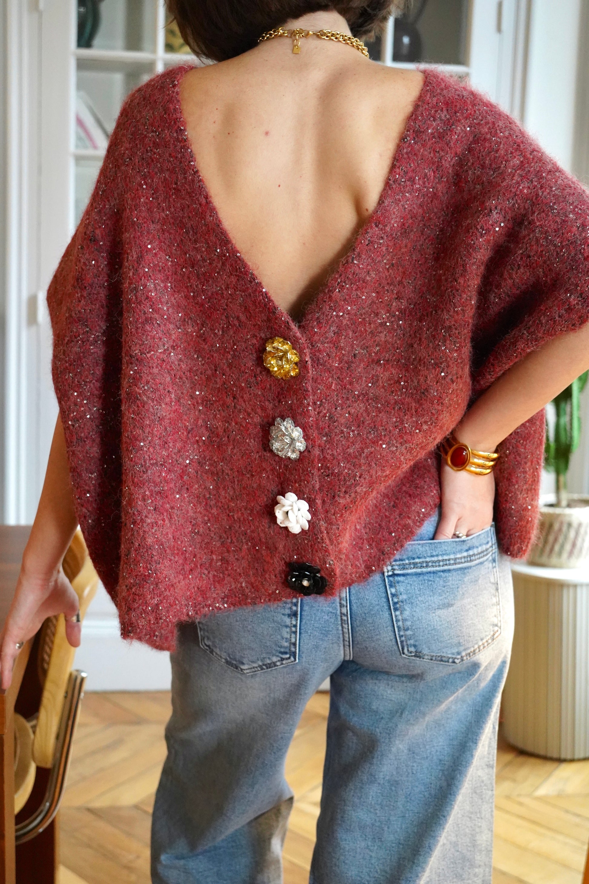 • Décolleté V dans le dos 4 boutons bijoux colorés cousus à la main