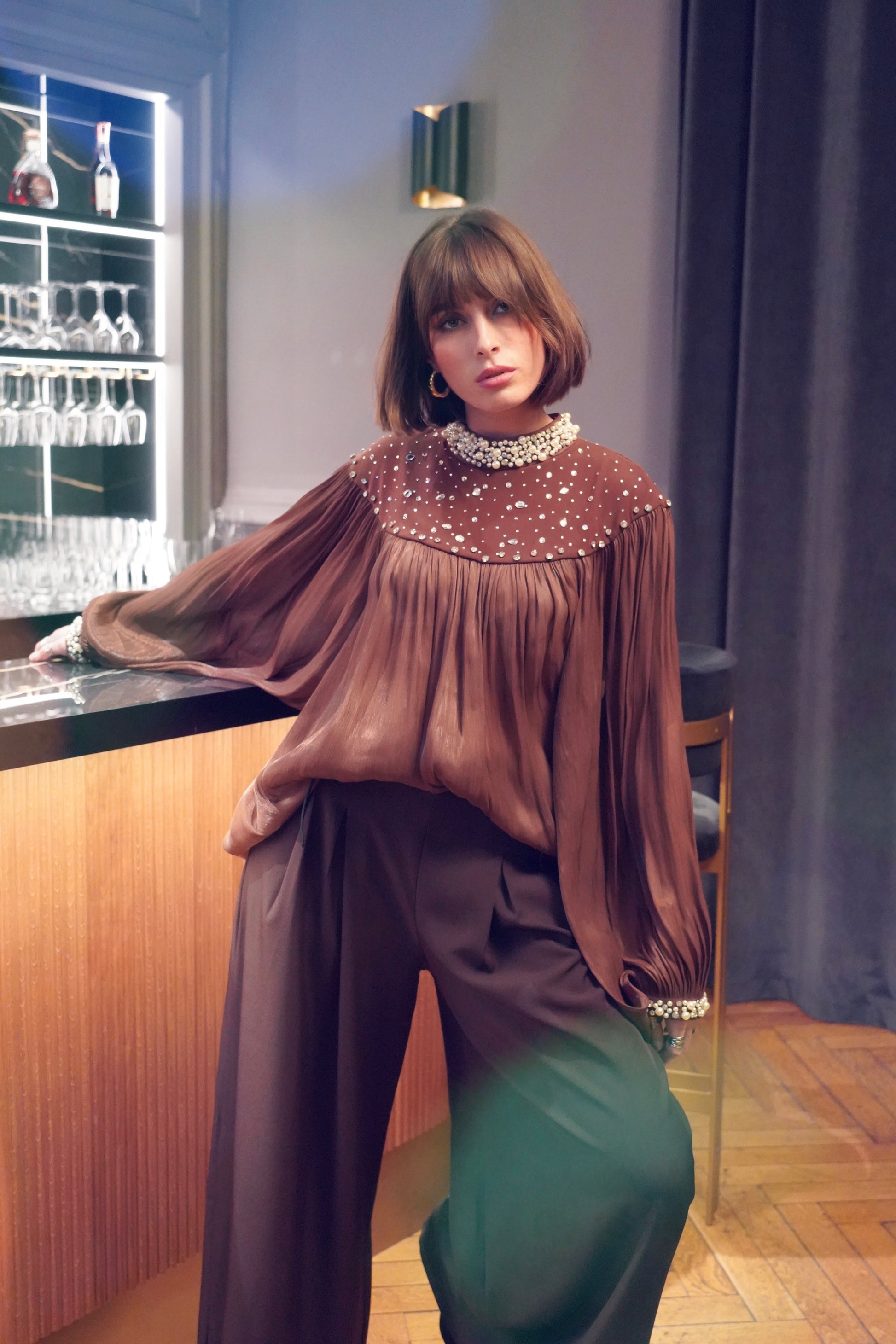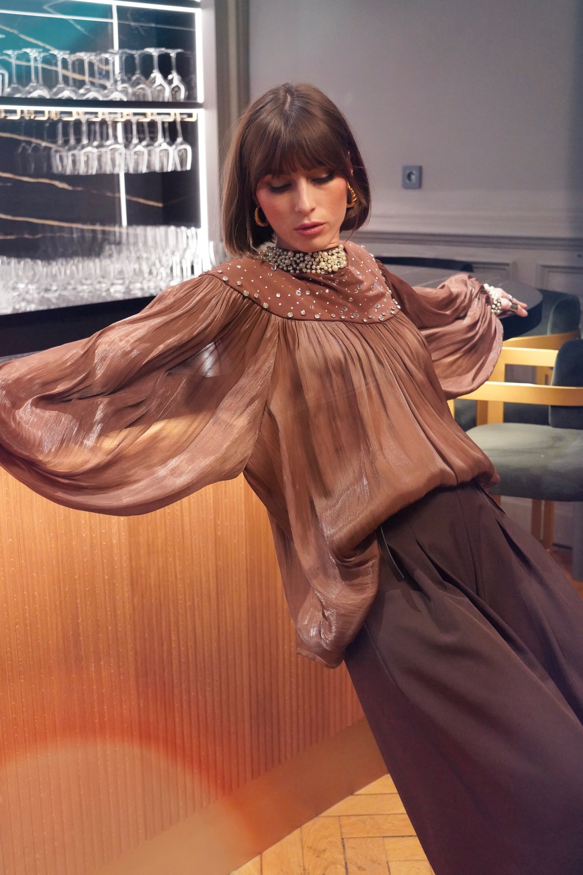 • Détails perles et strass sur les poignets