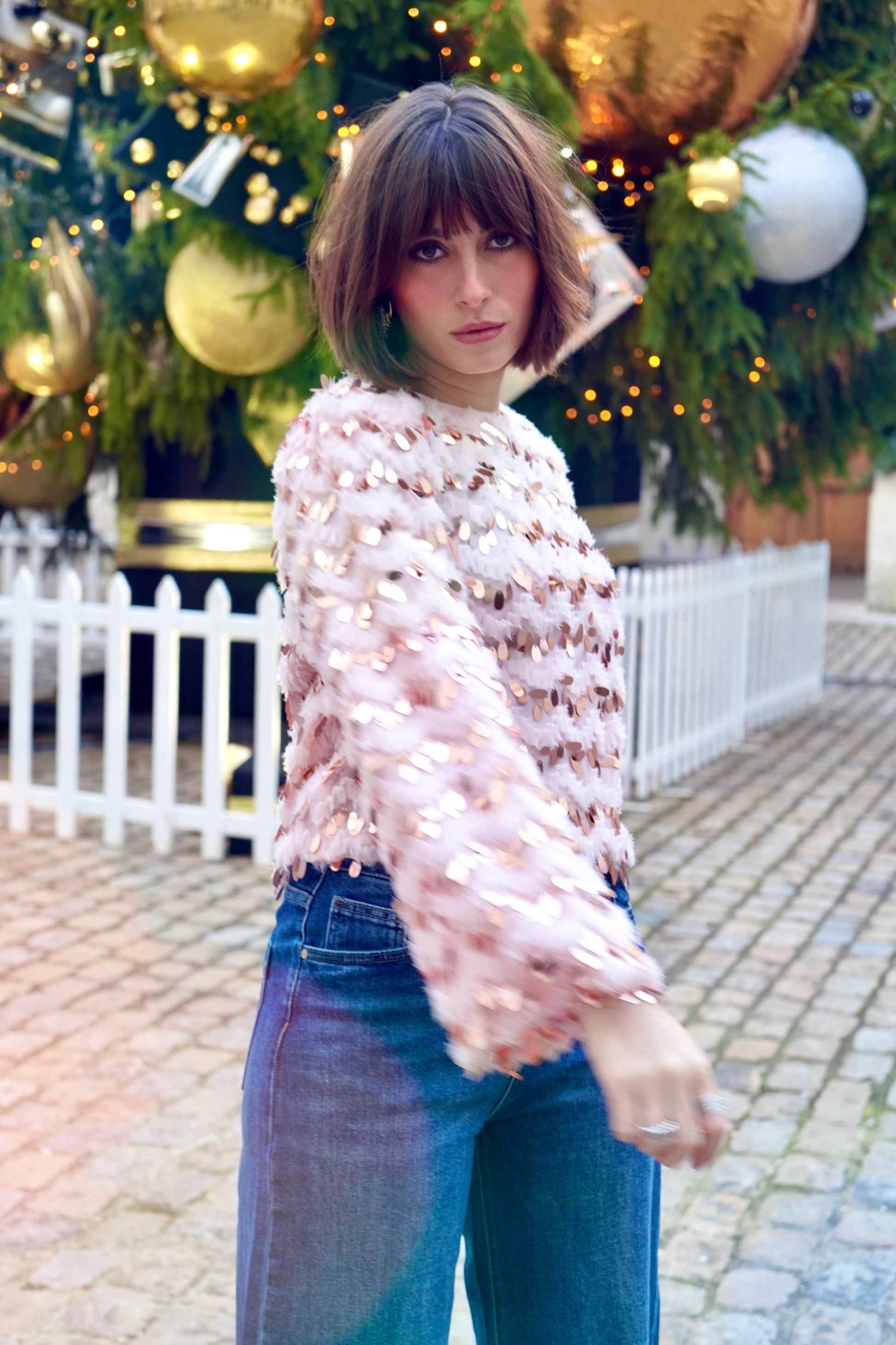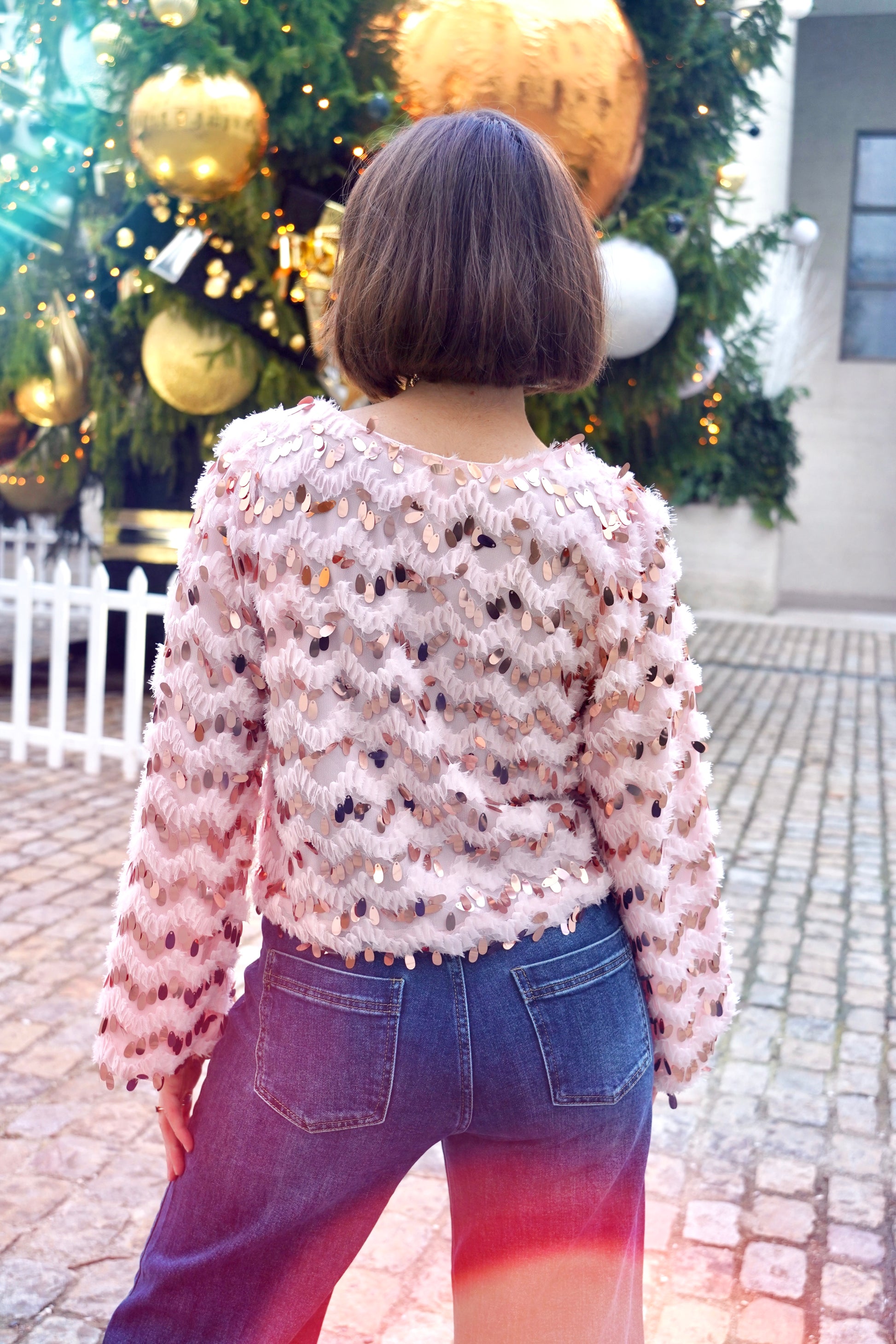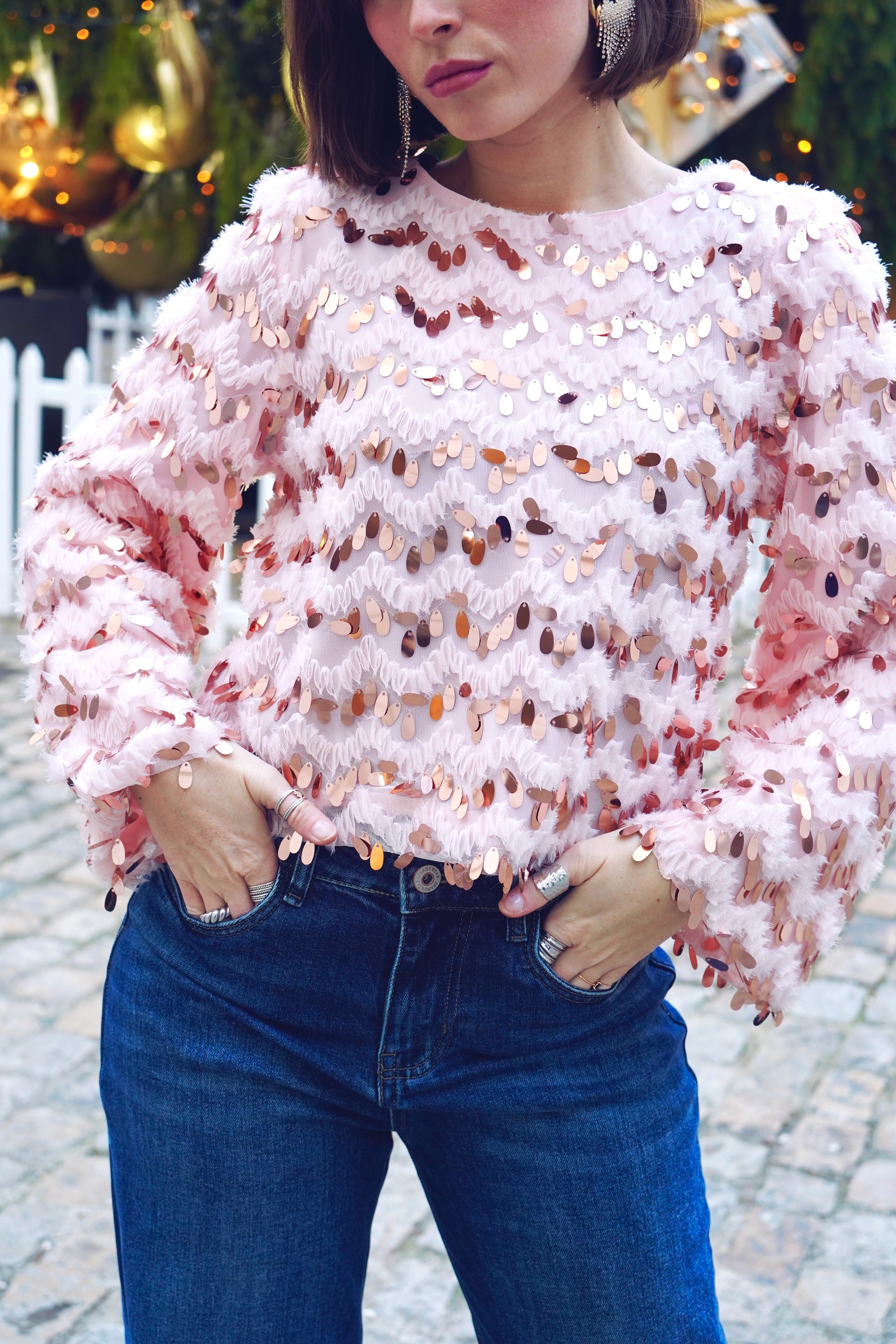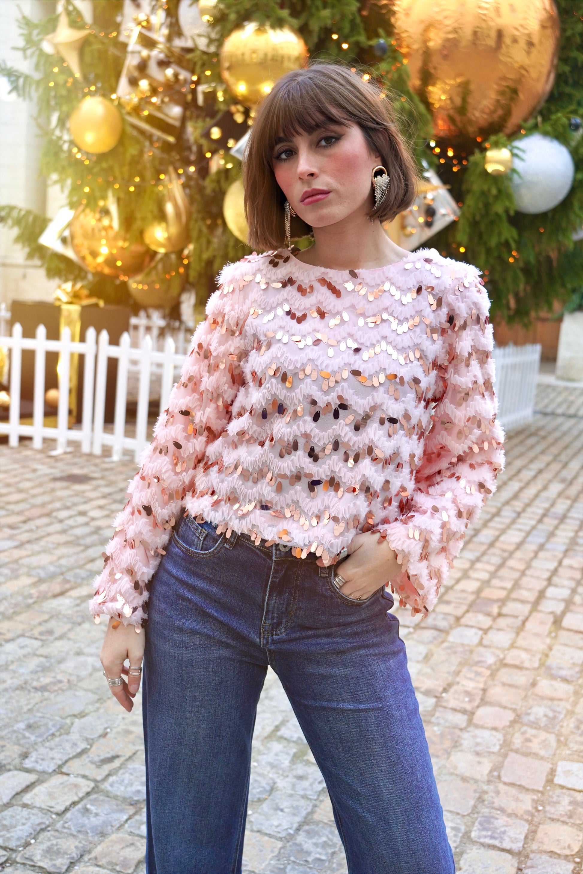 • Parsemé de grands sequins rose gold en forme de gouttes
