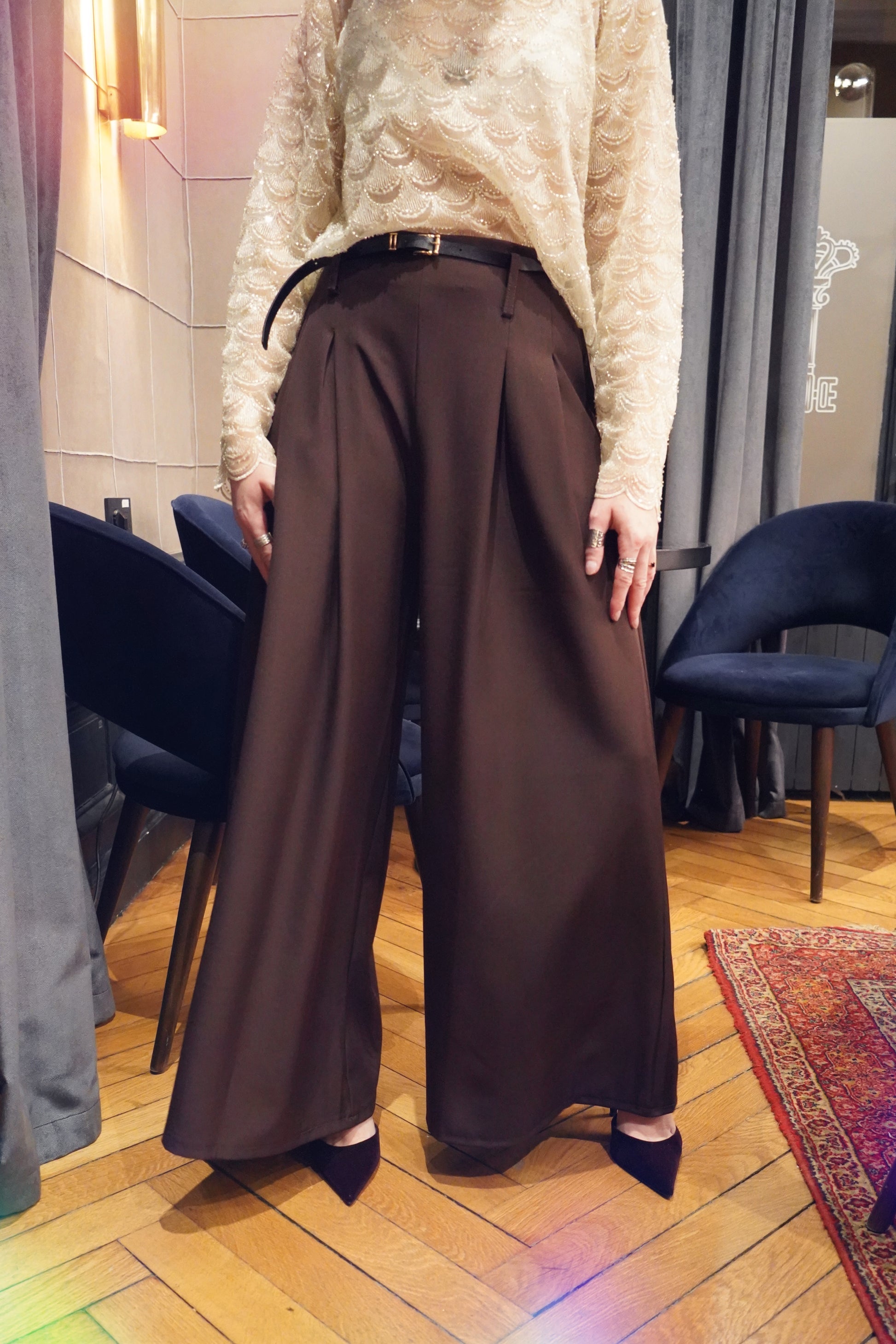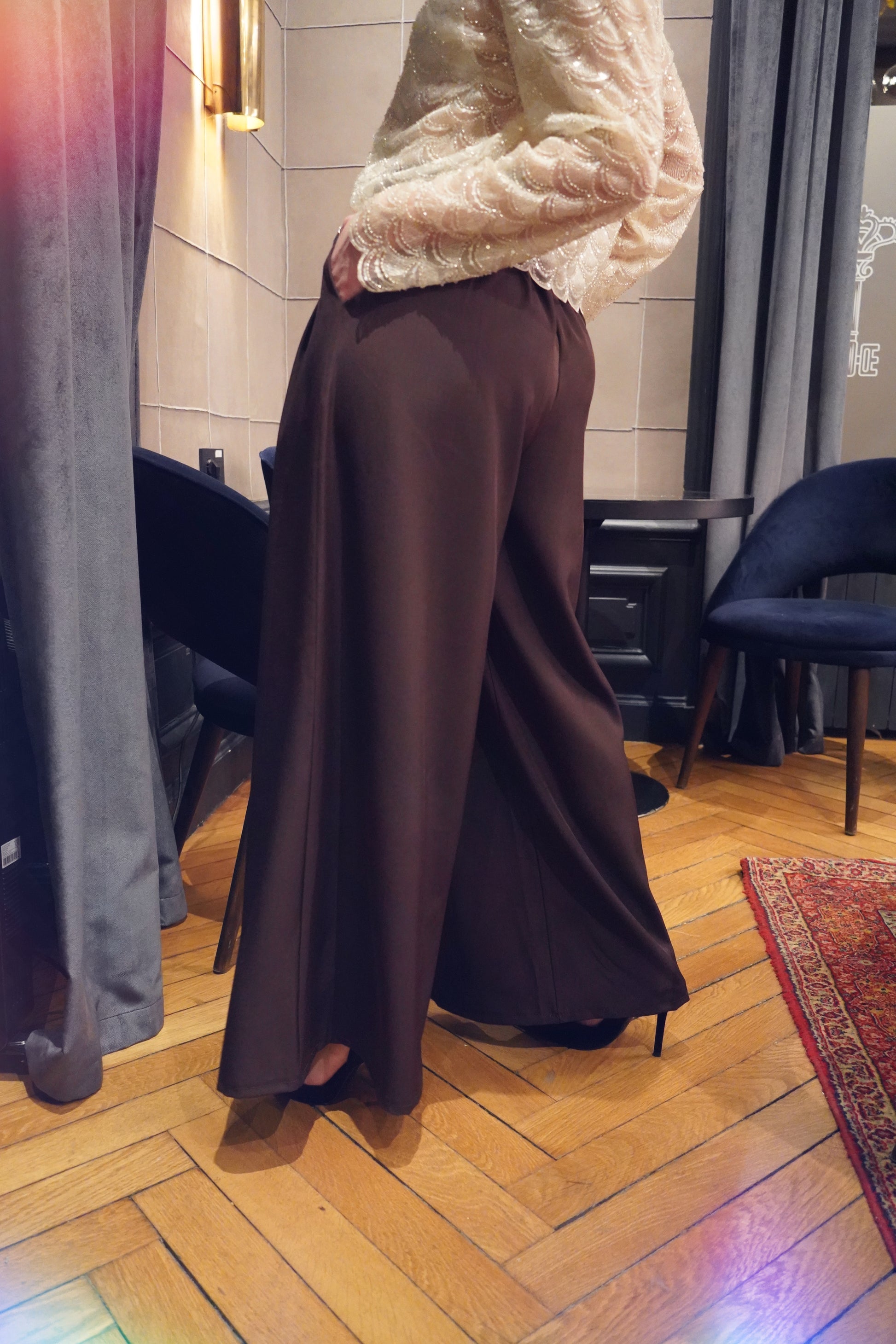 • Pantalon marron taille haute coupe large