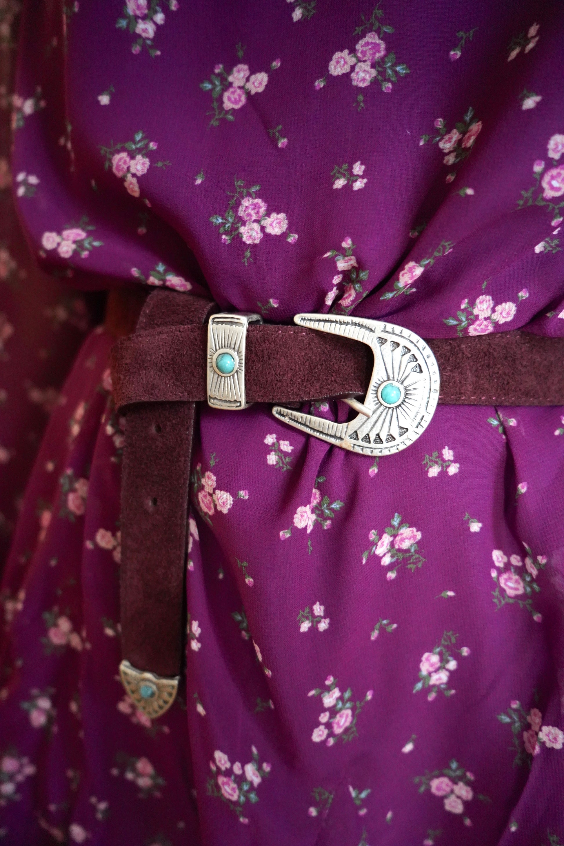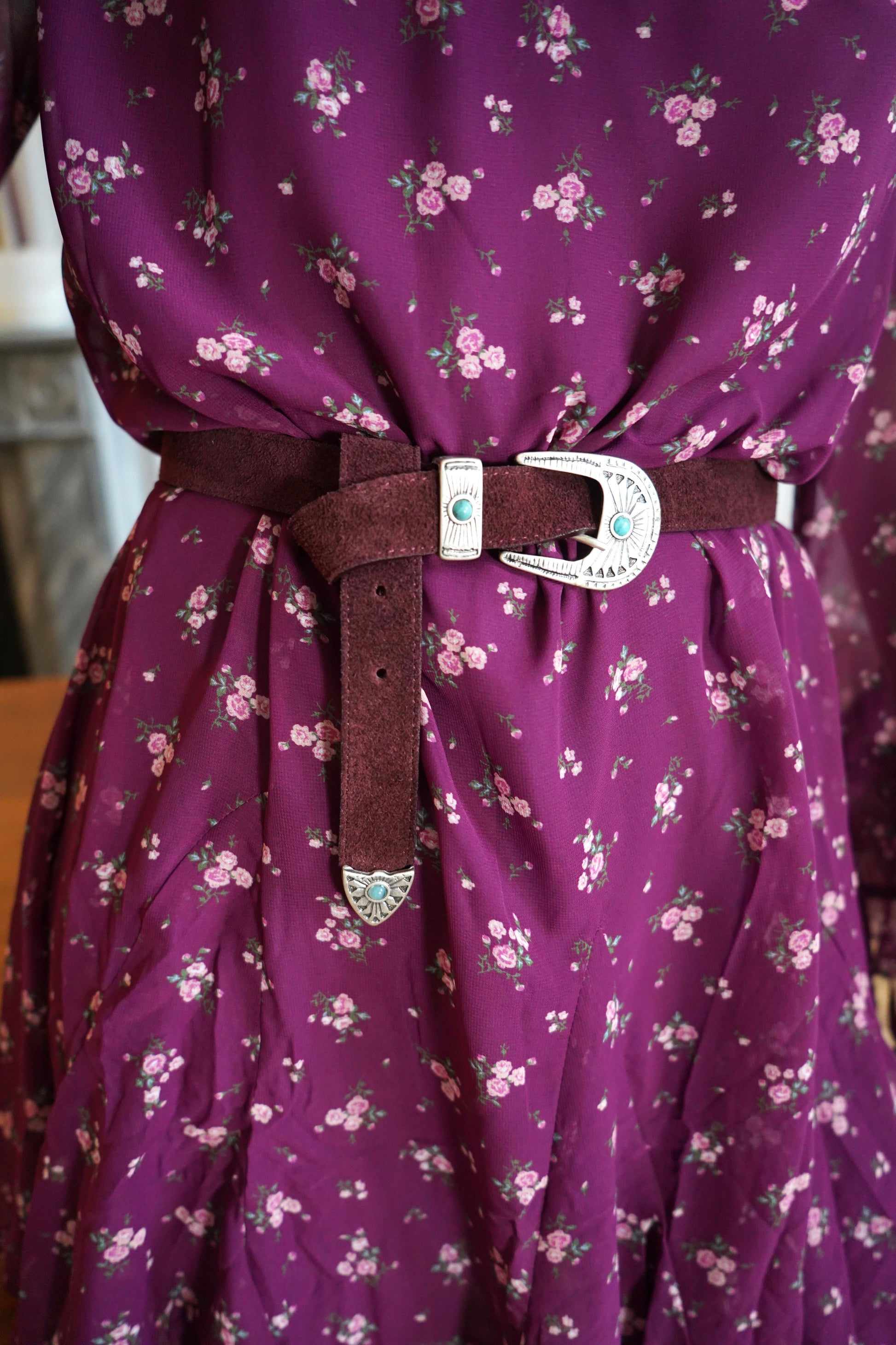 • Robe fluide couleur prune à petites fleurs délicates