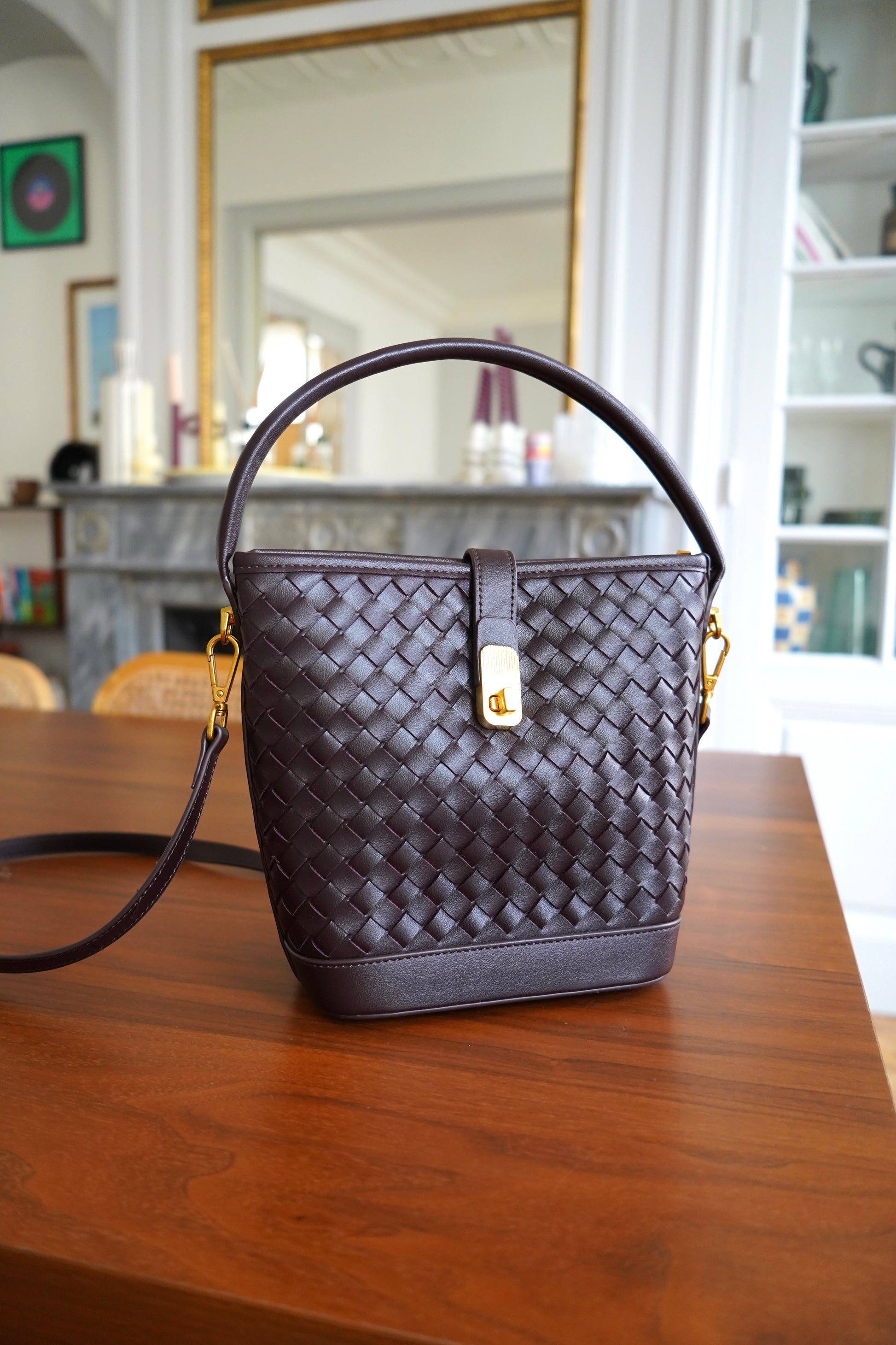 • Sac seau en simili cuir bordeaux