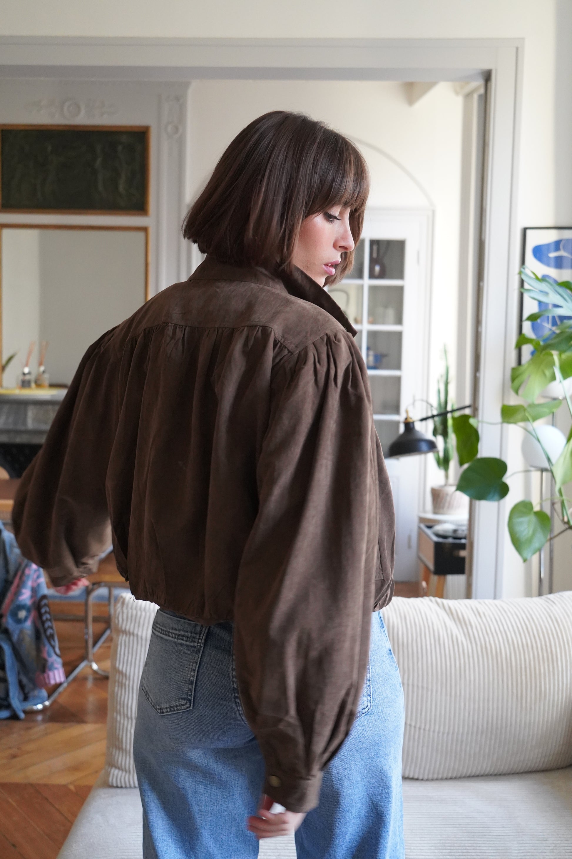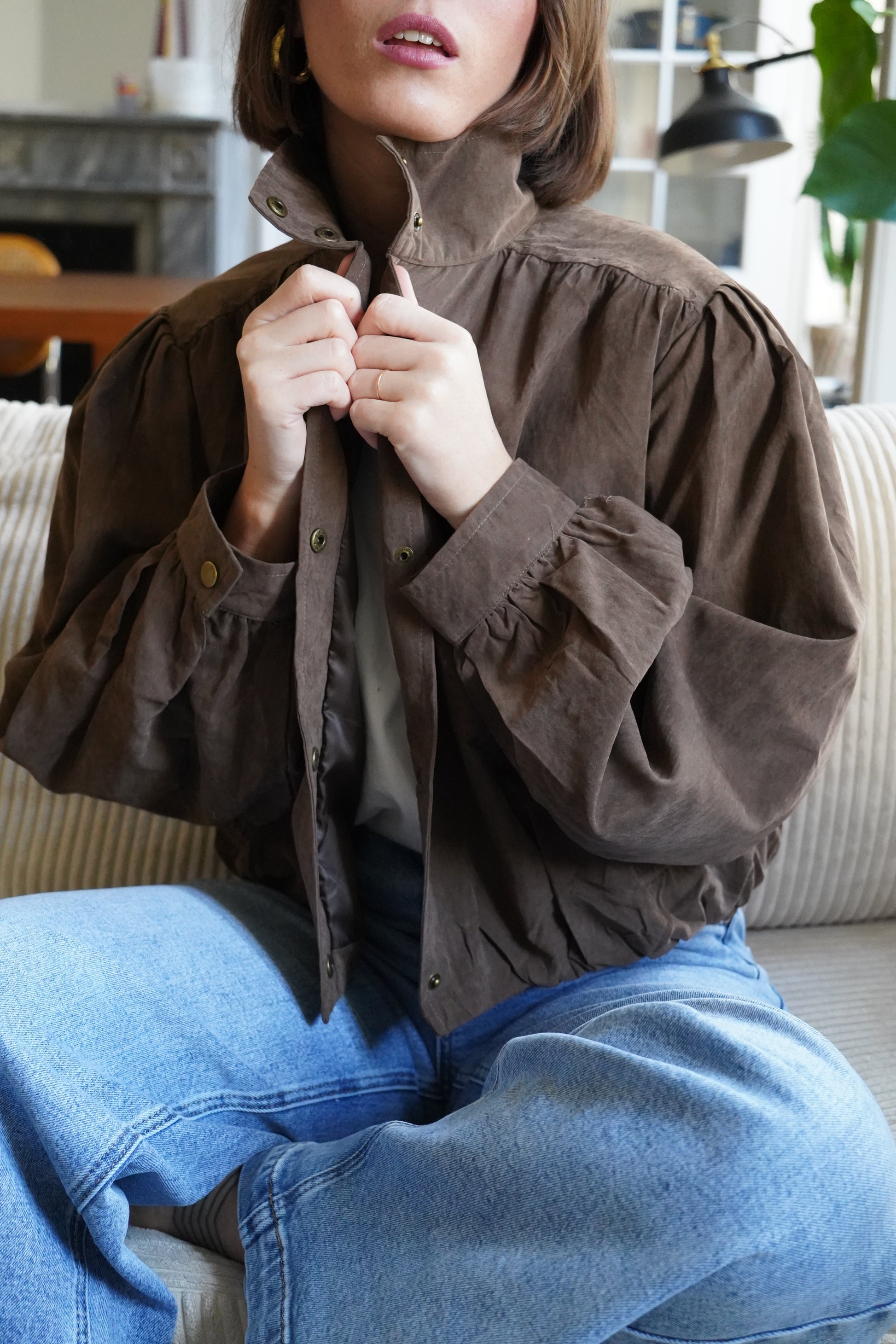 • Veste boule en suédine chocolat
