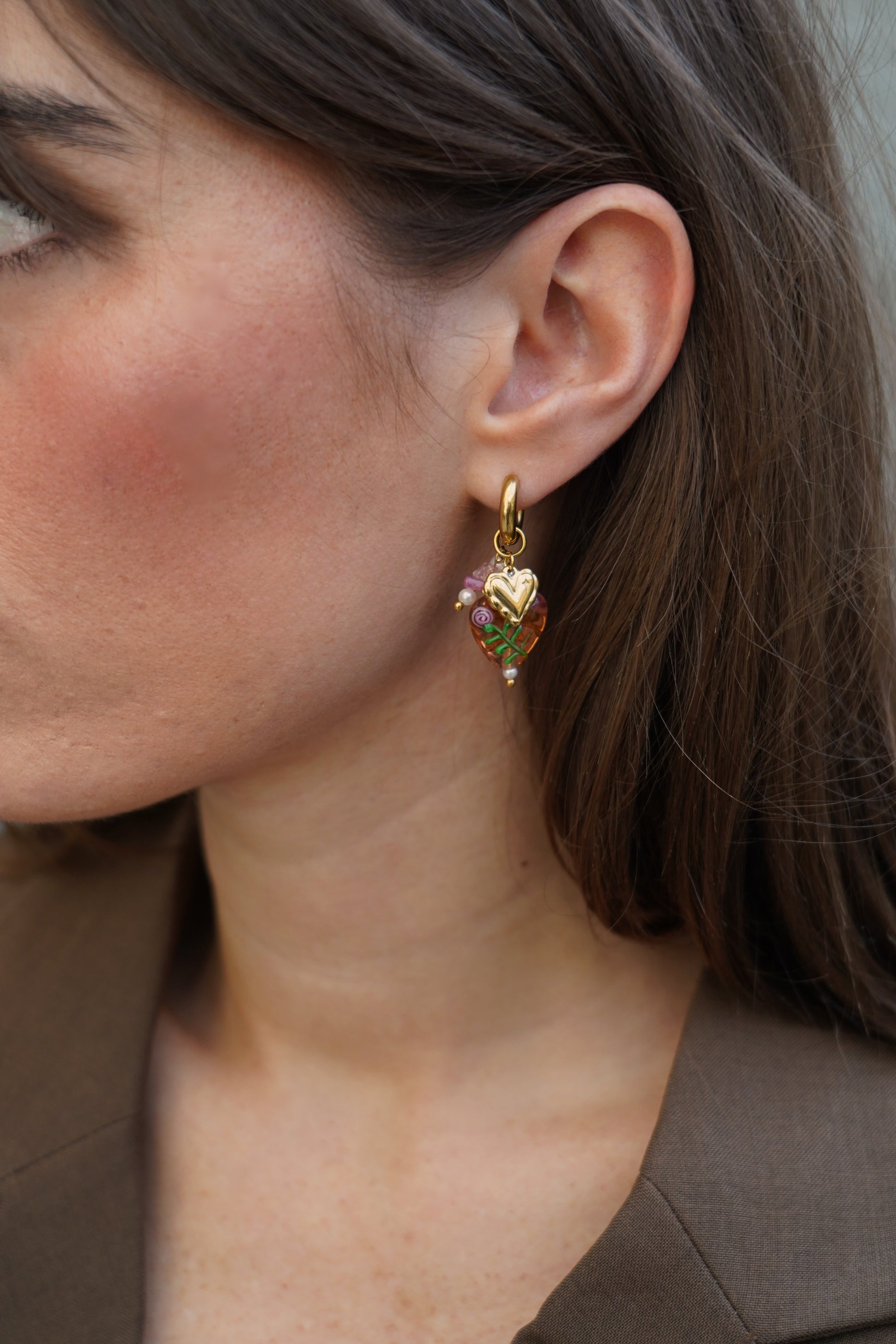 • Créoles dorées ornées d'un pendentif en forme de coeur