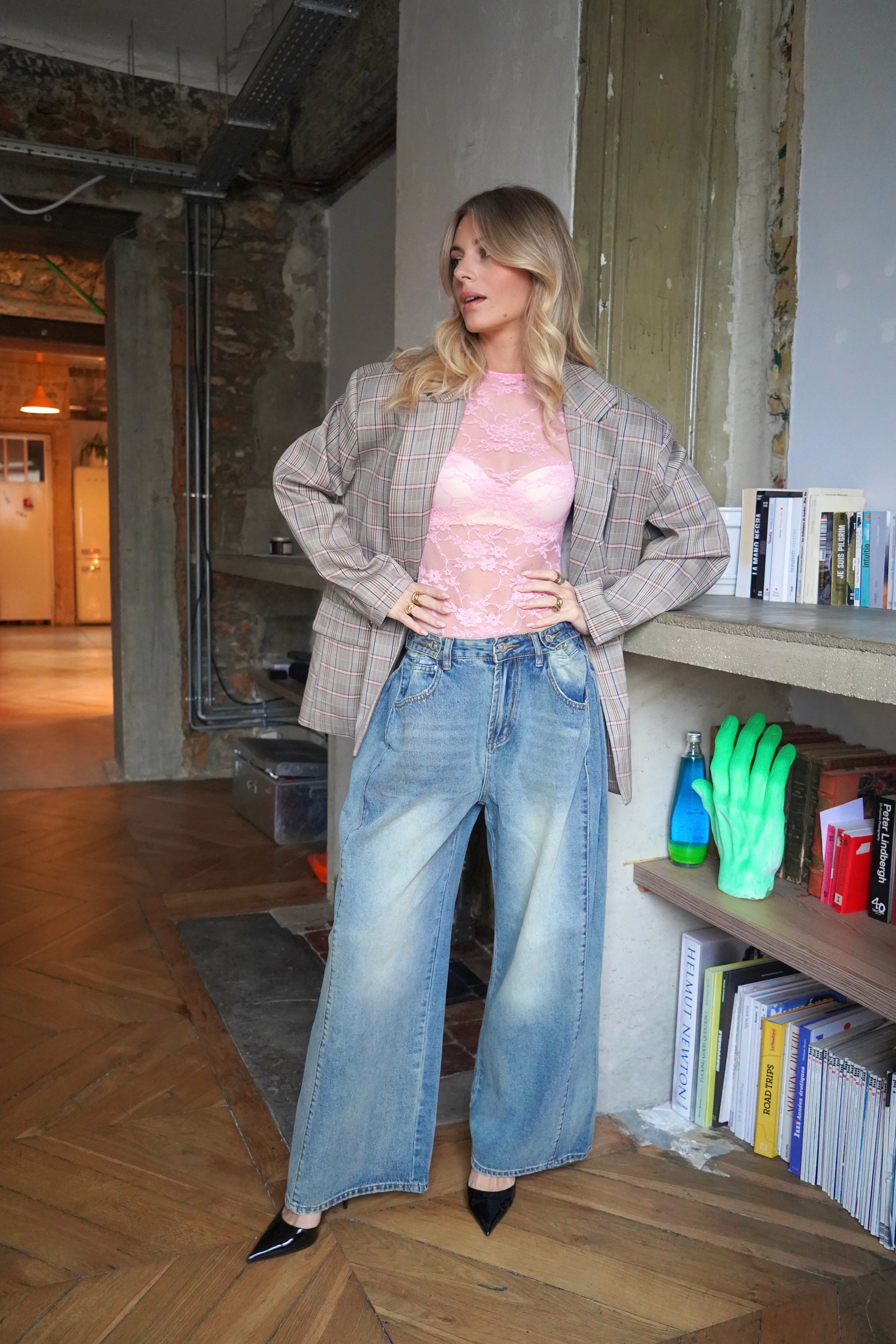 Body en dentelle rose semi-transparente