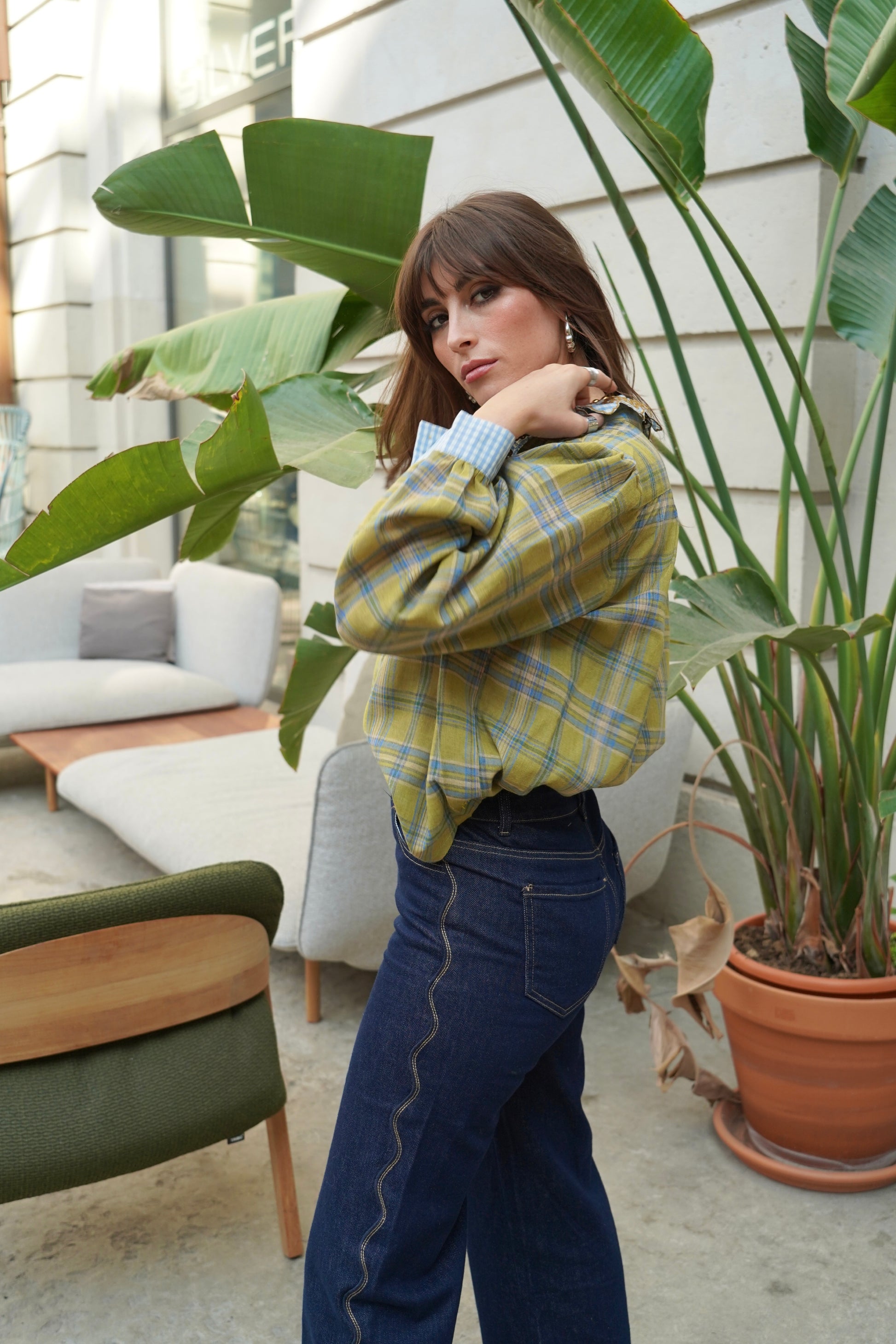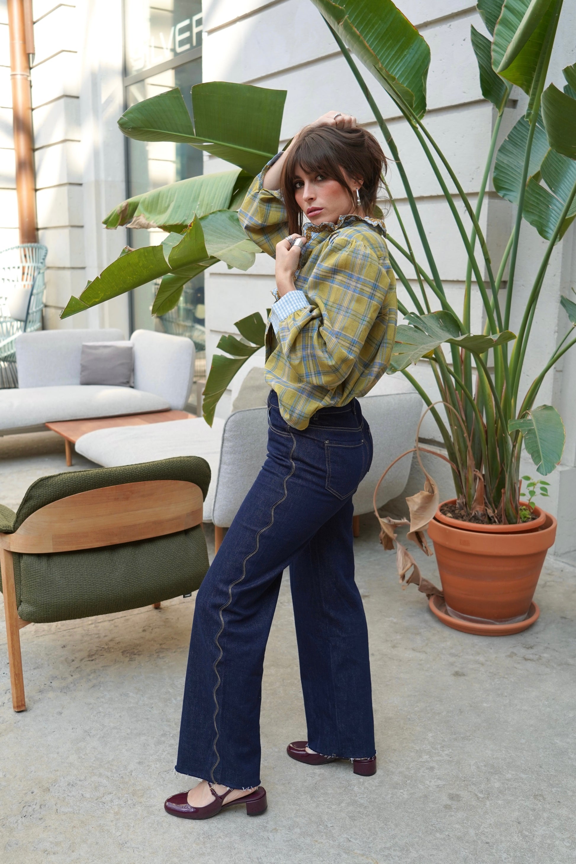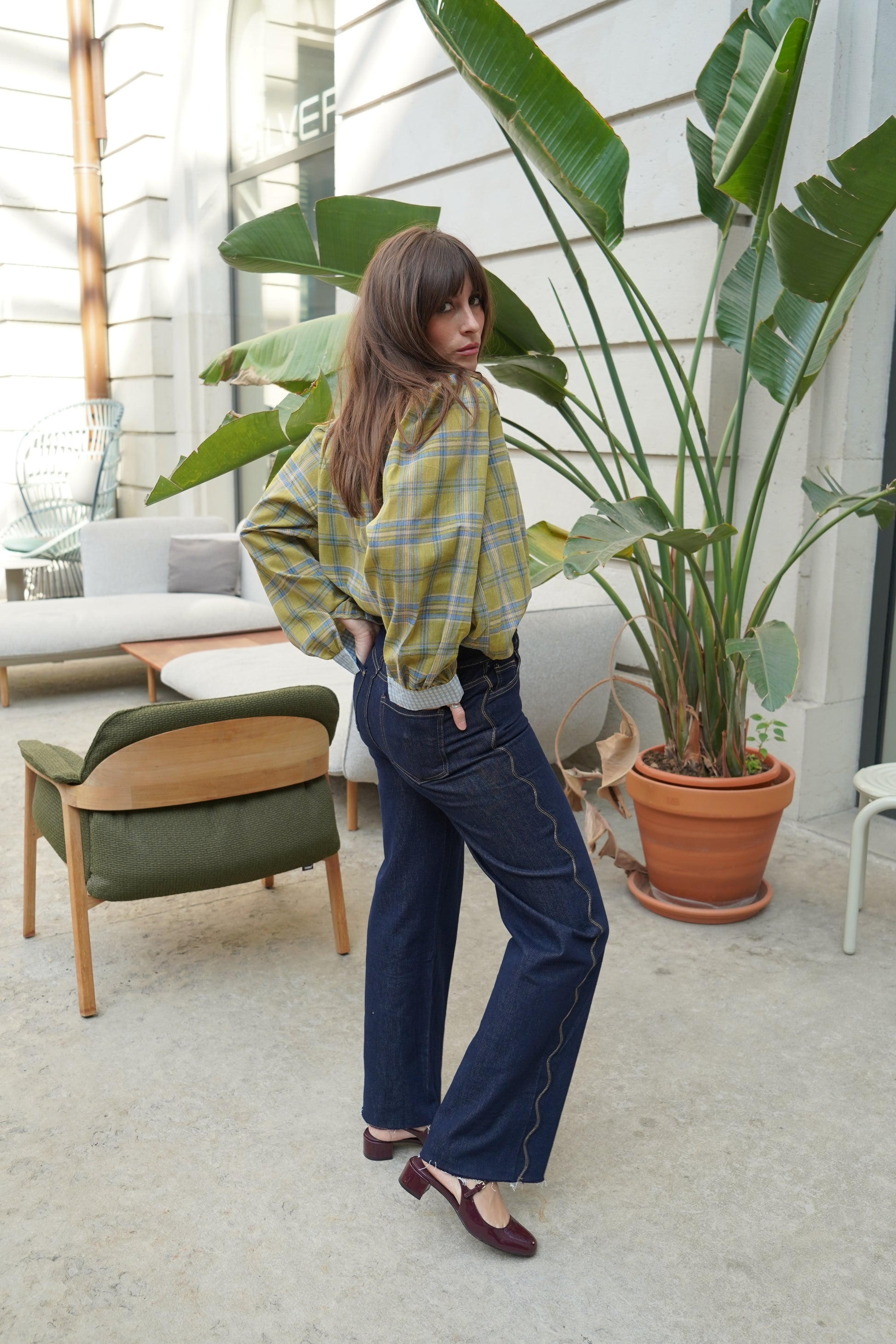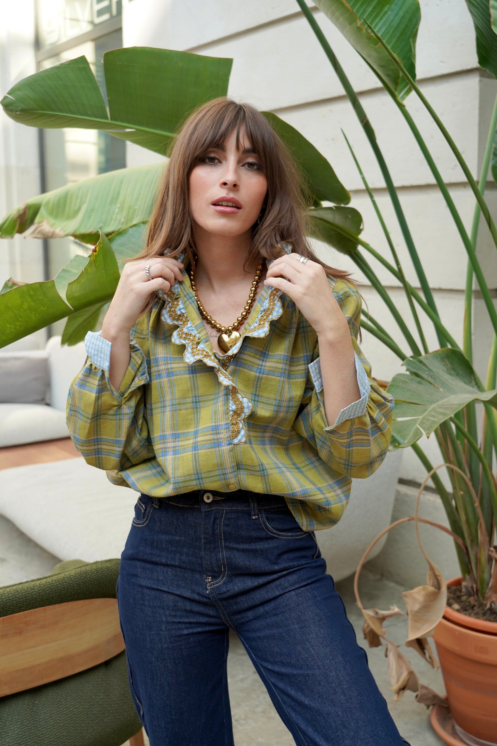 • Chemise à carreaux col montant