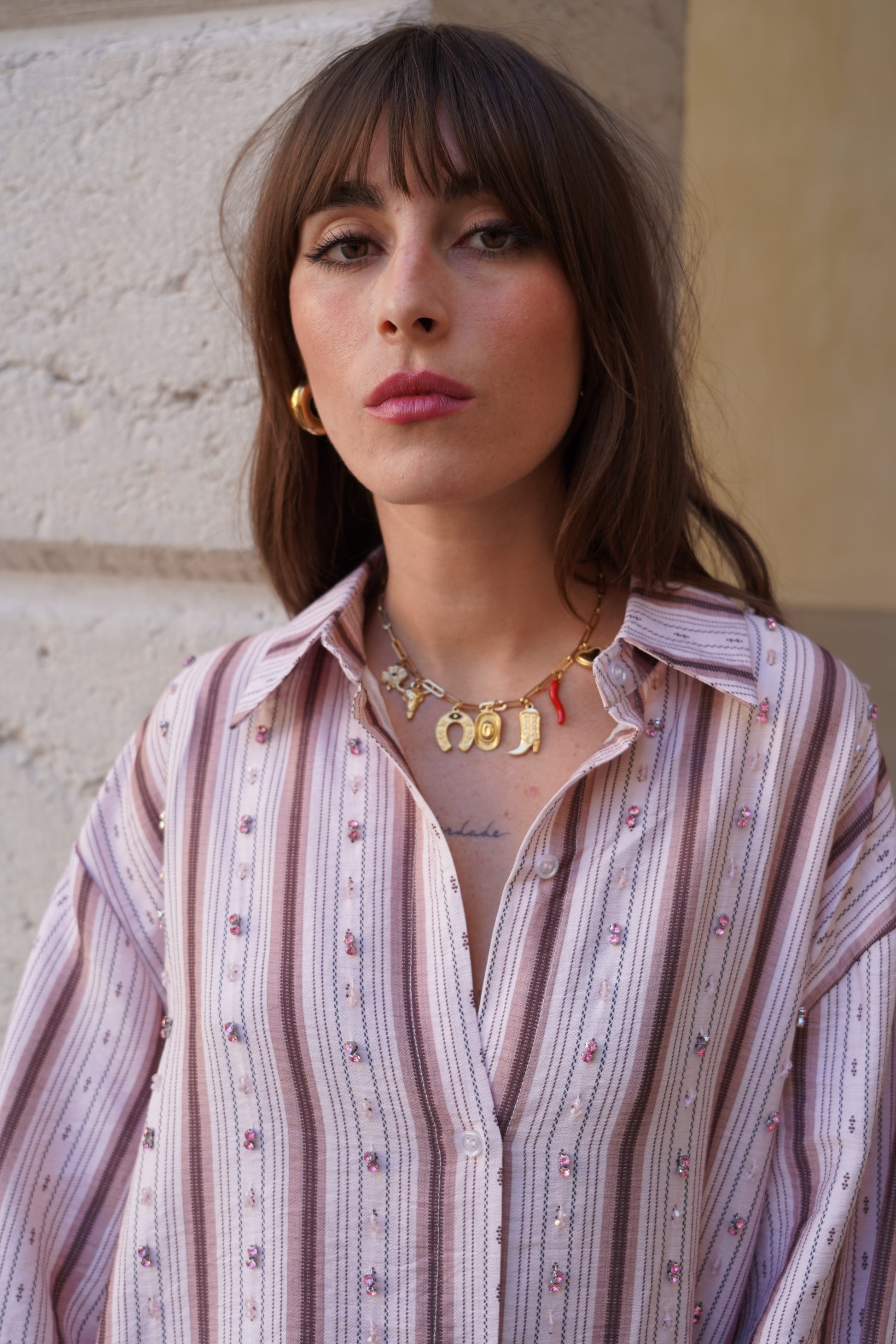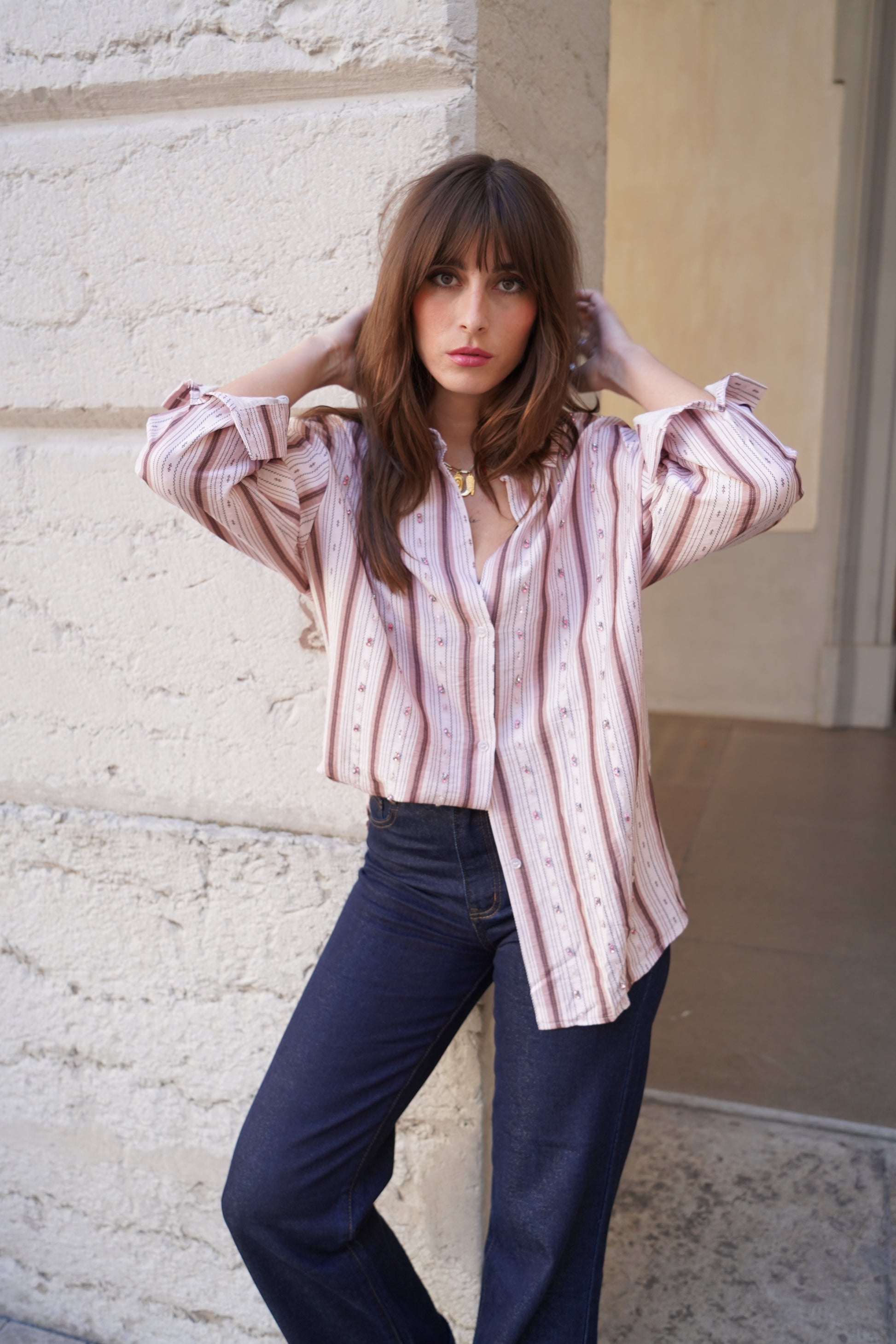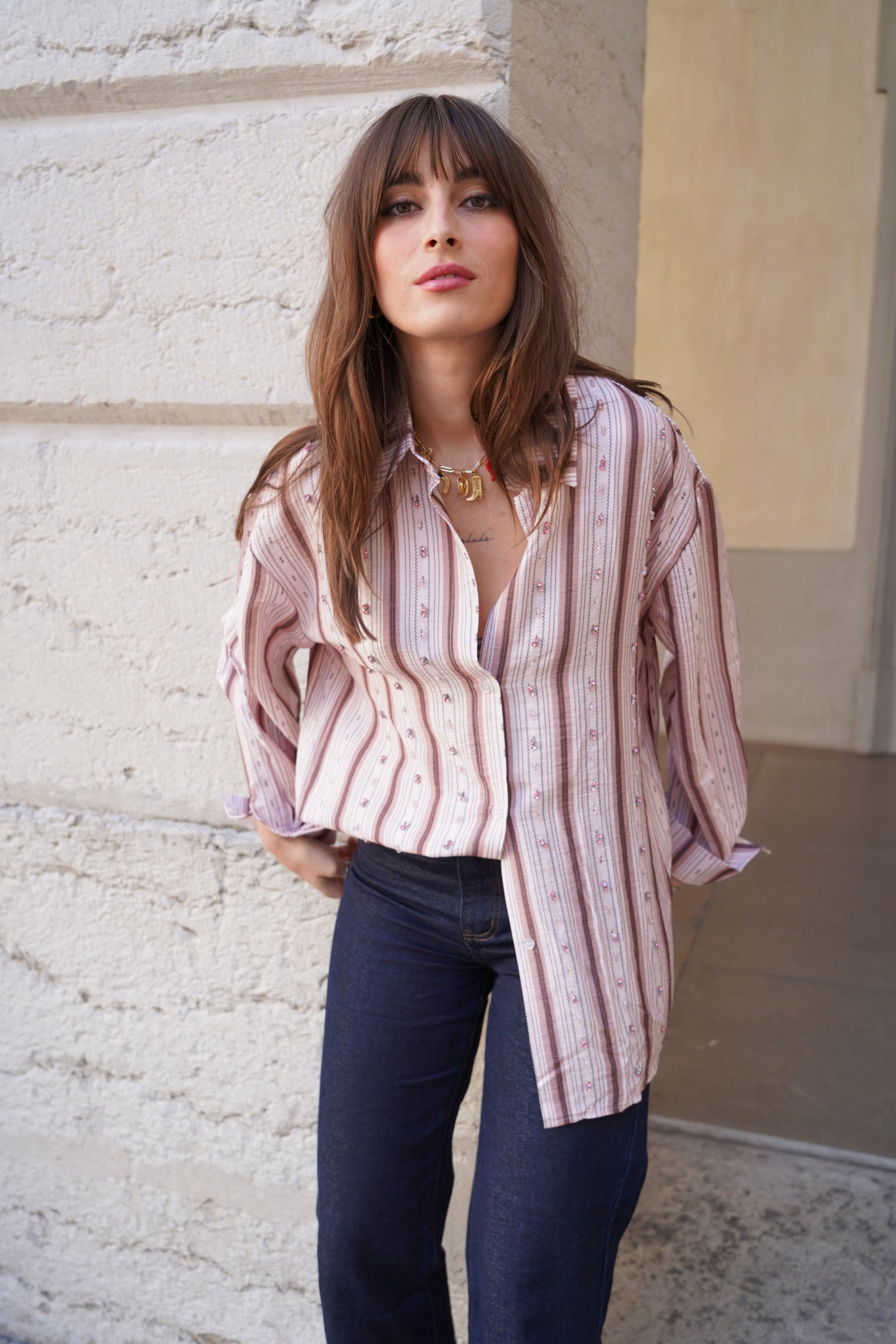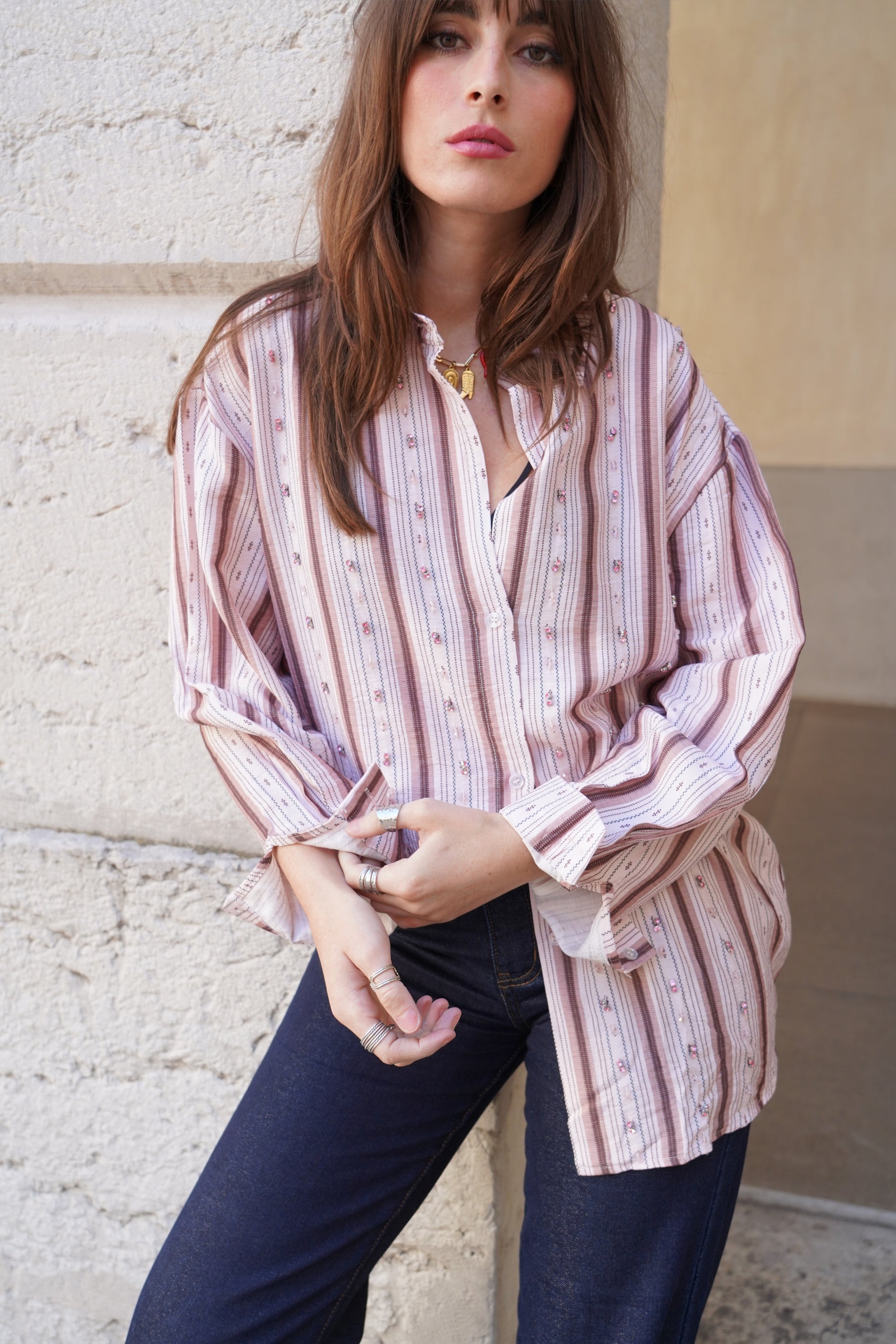 • Chemise ample à rayures verticales dans les tons rosés et écrus 🌸