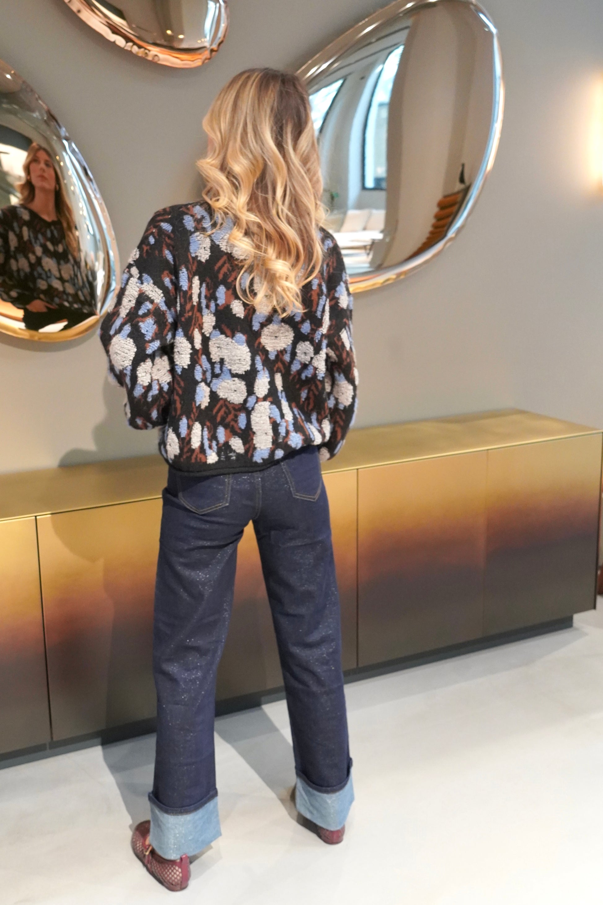 • Motif tâcheté rétro dans des tons bleus, bruns et gris sur fond noir