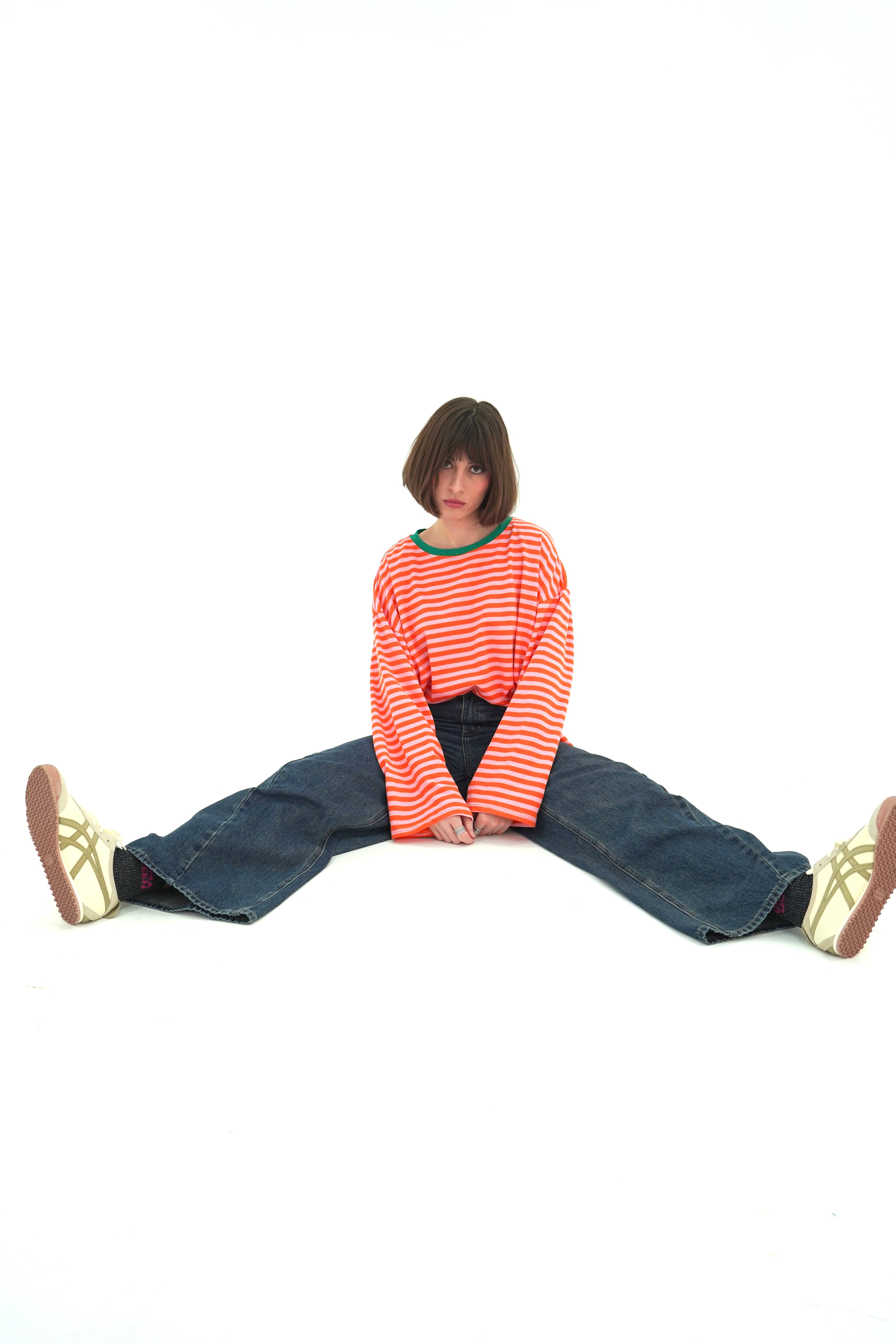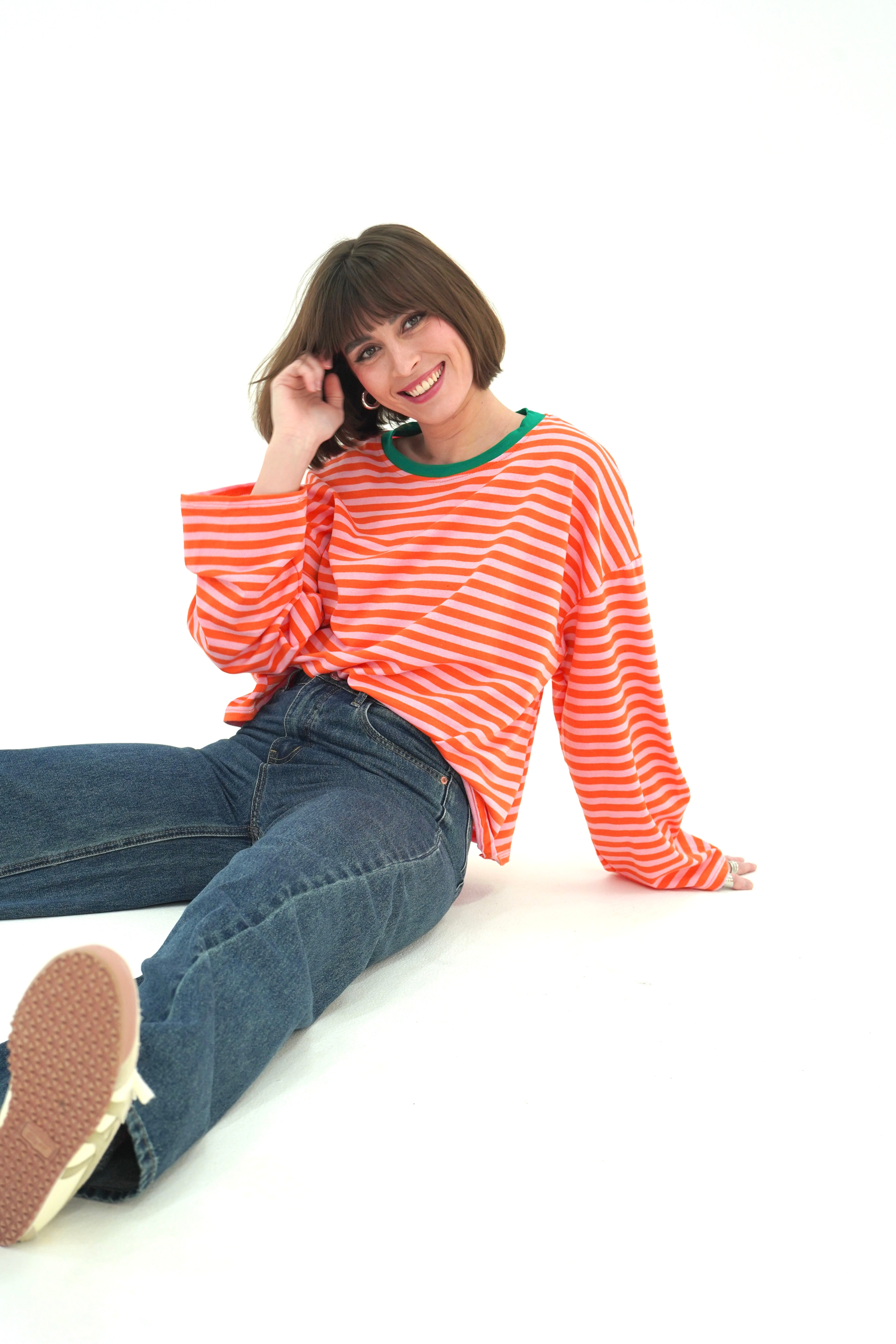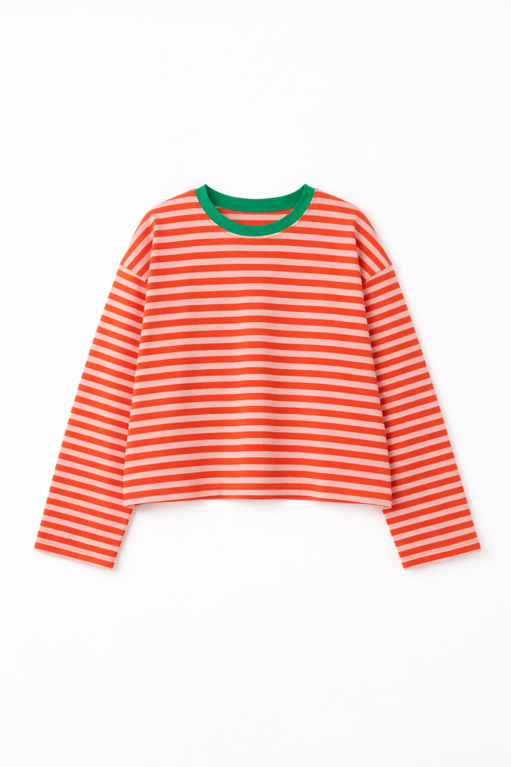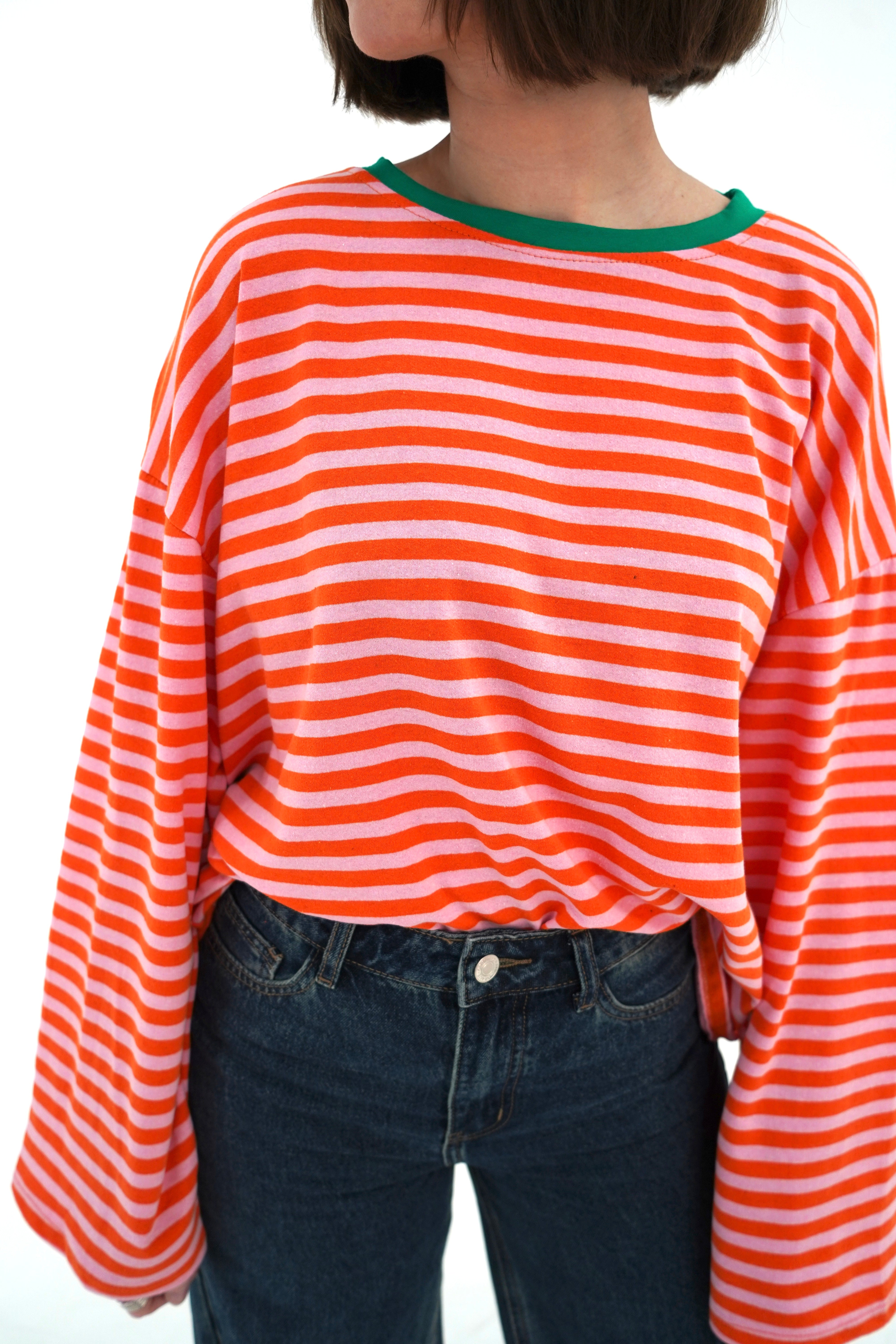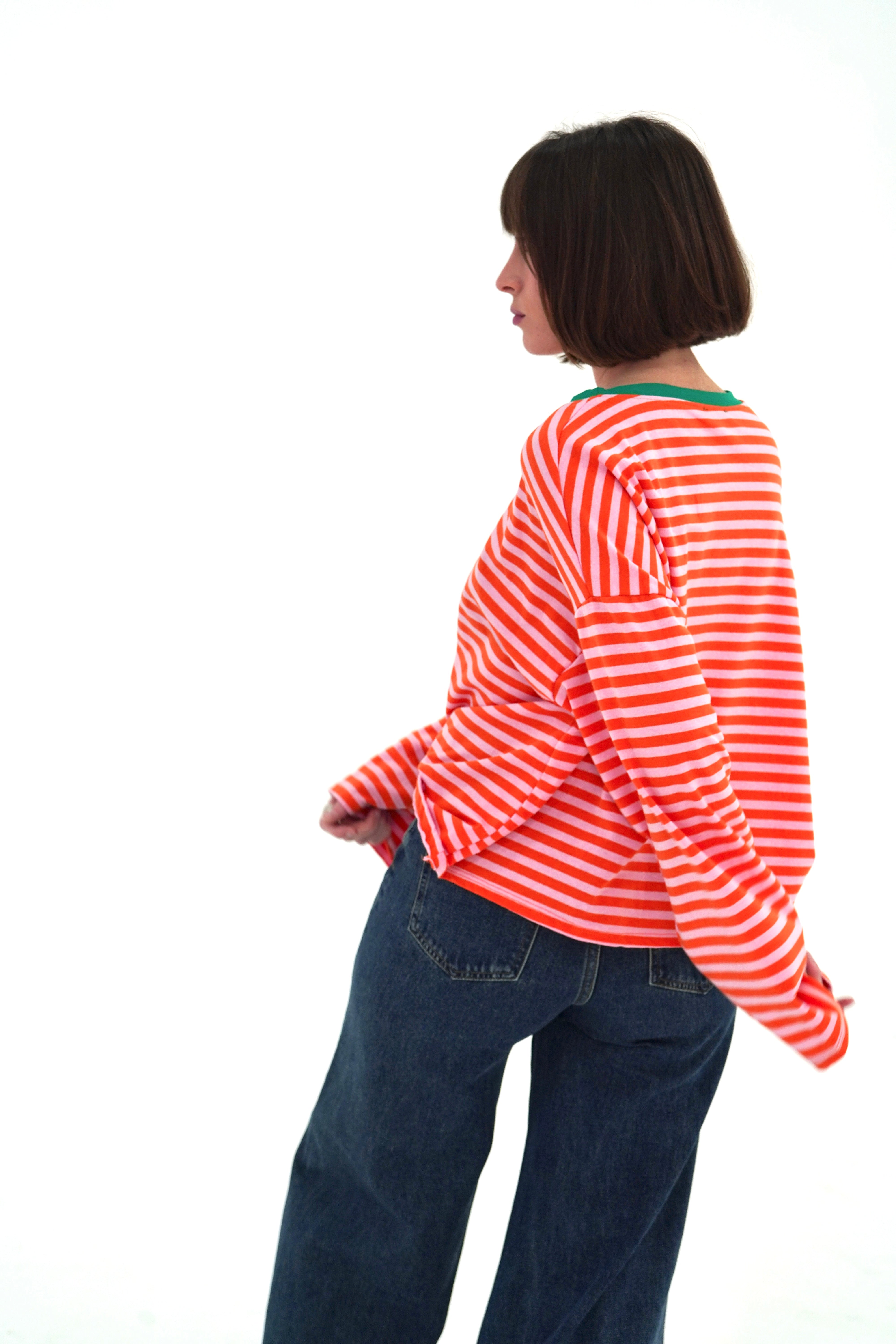 T-shirt à manches longues rayé orange et rose