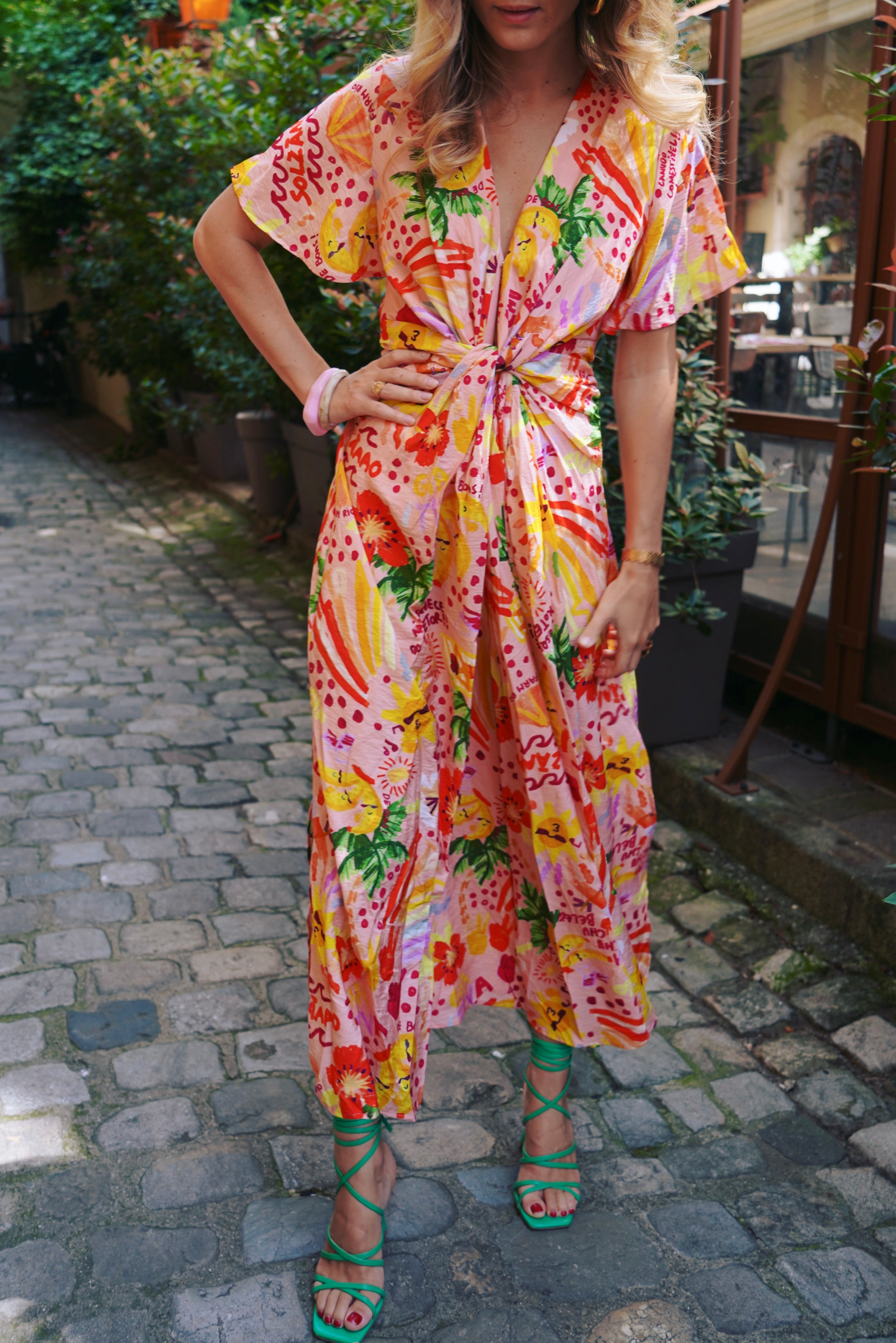 Robe longue à imprimé graphique multicolore