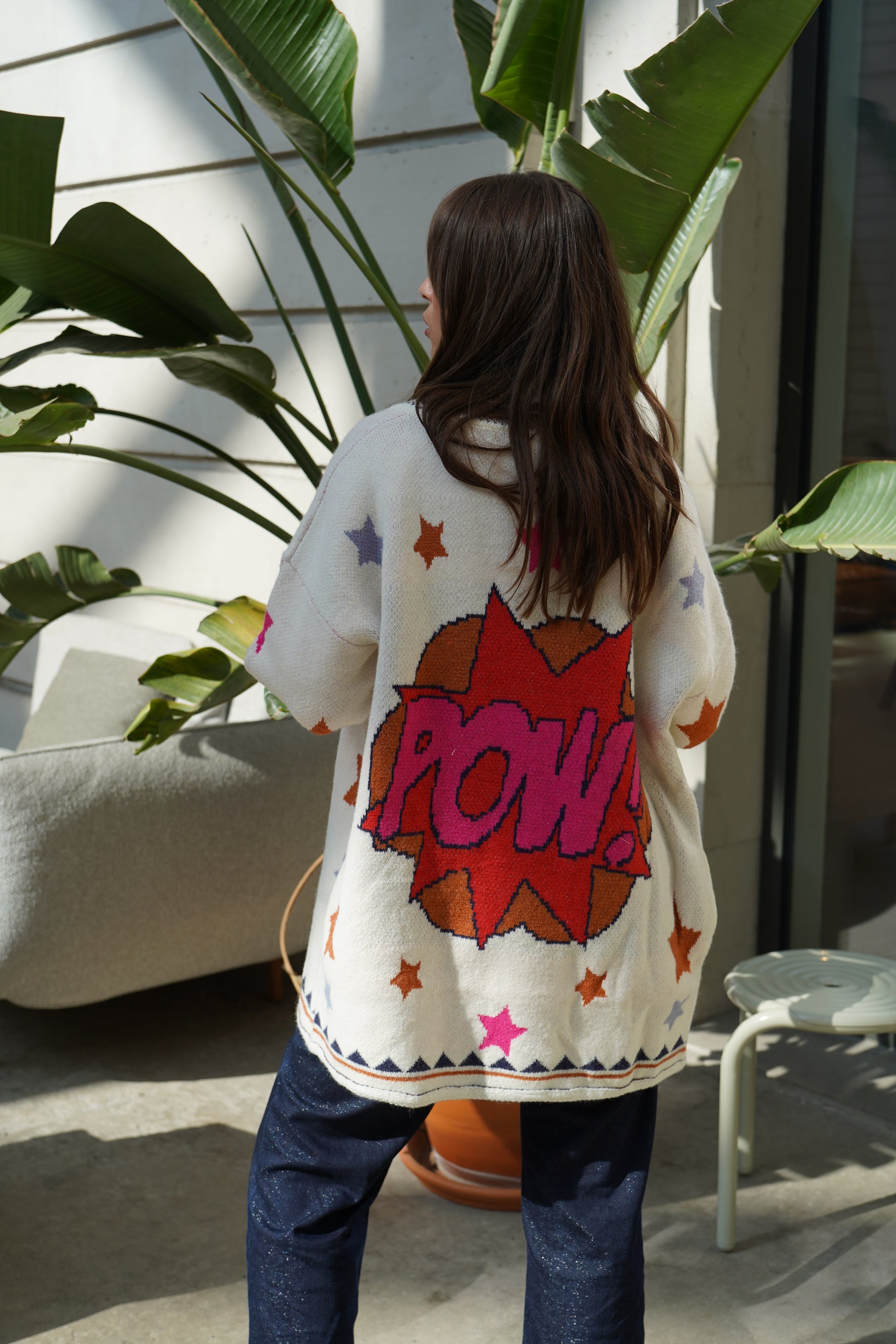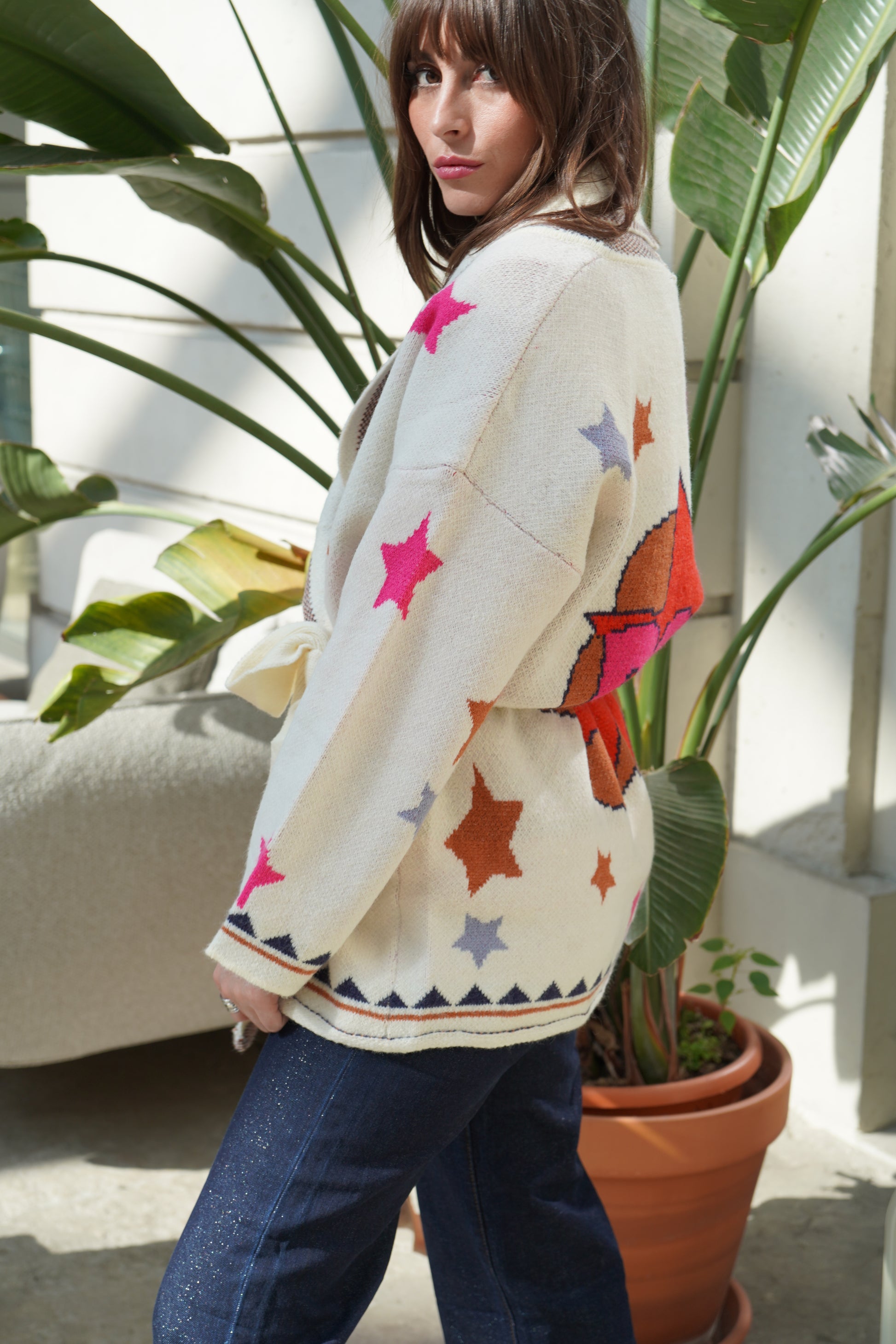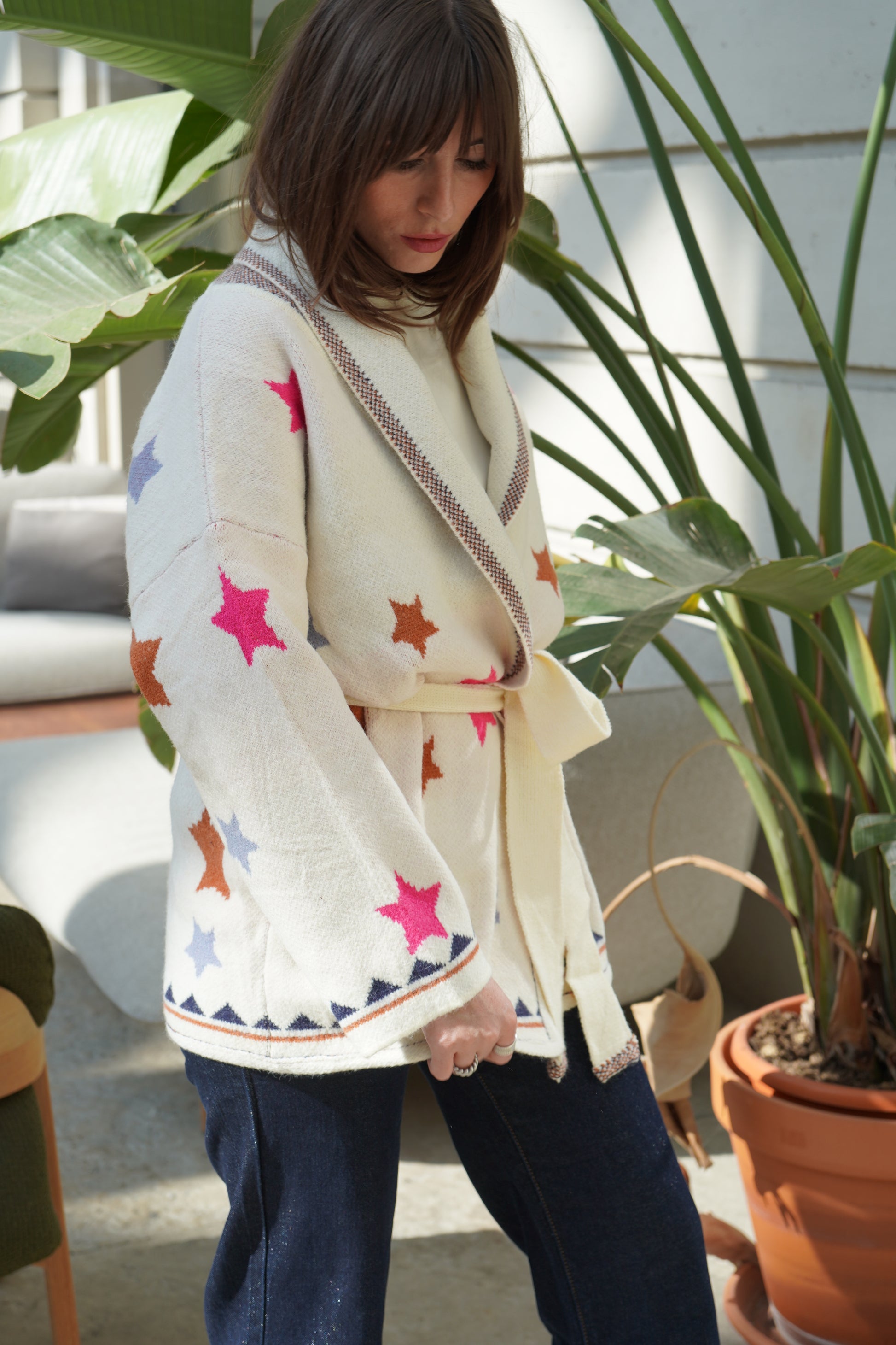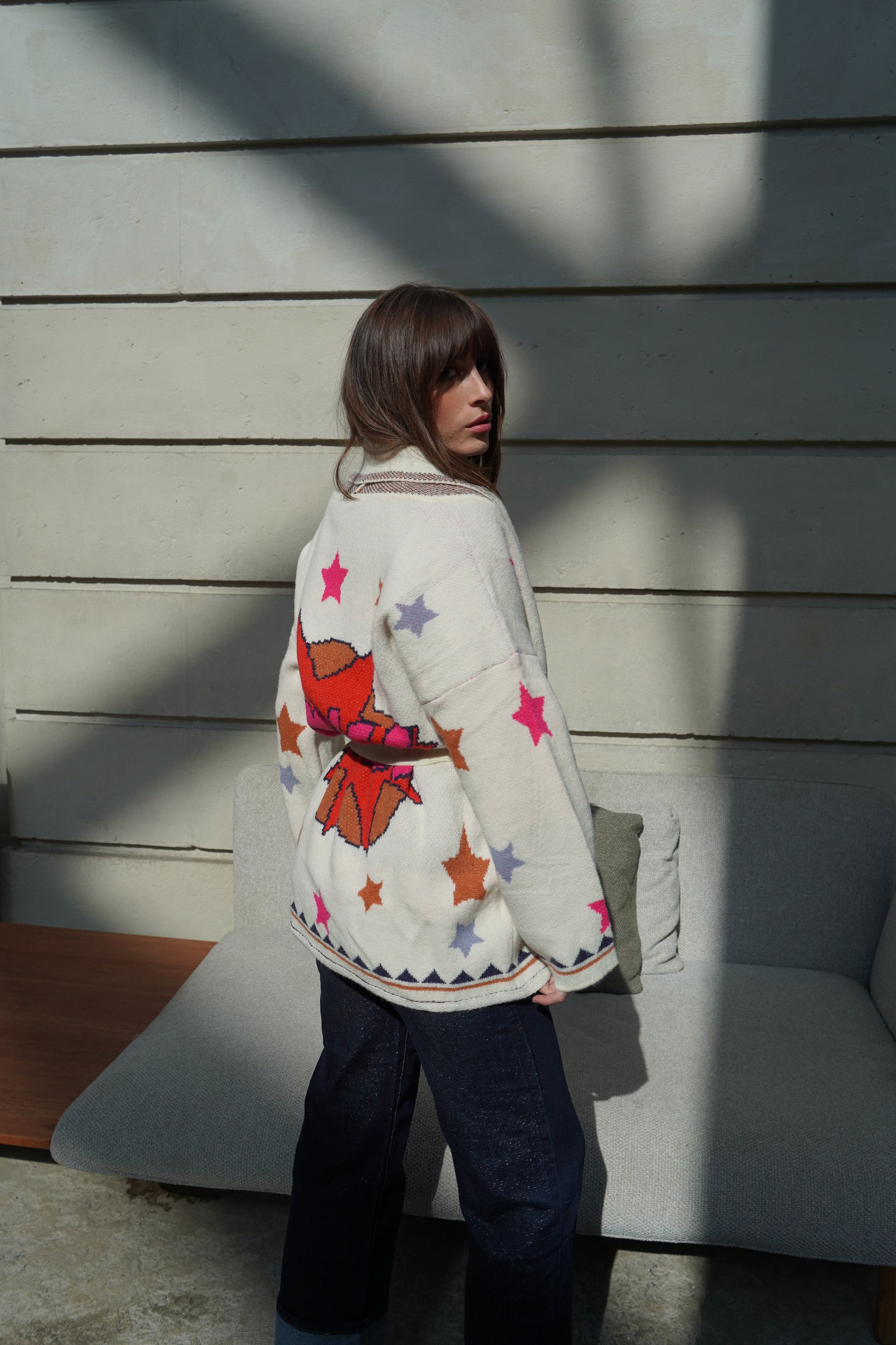 • Veste en maille écrue à imprimé étoiles colorées
